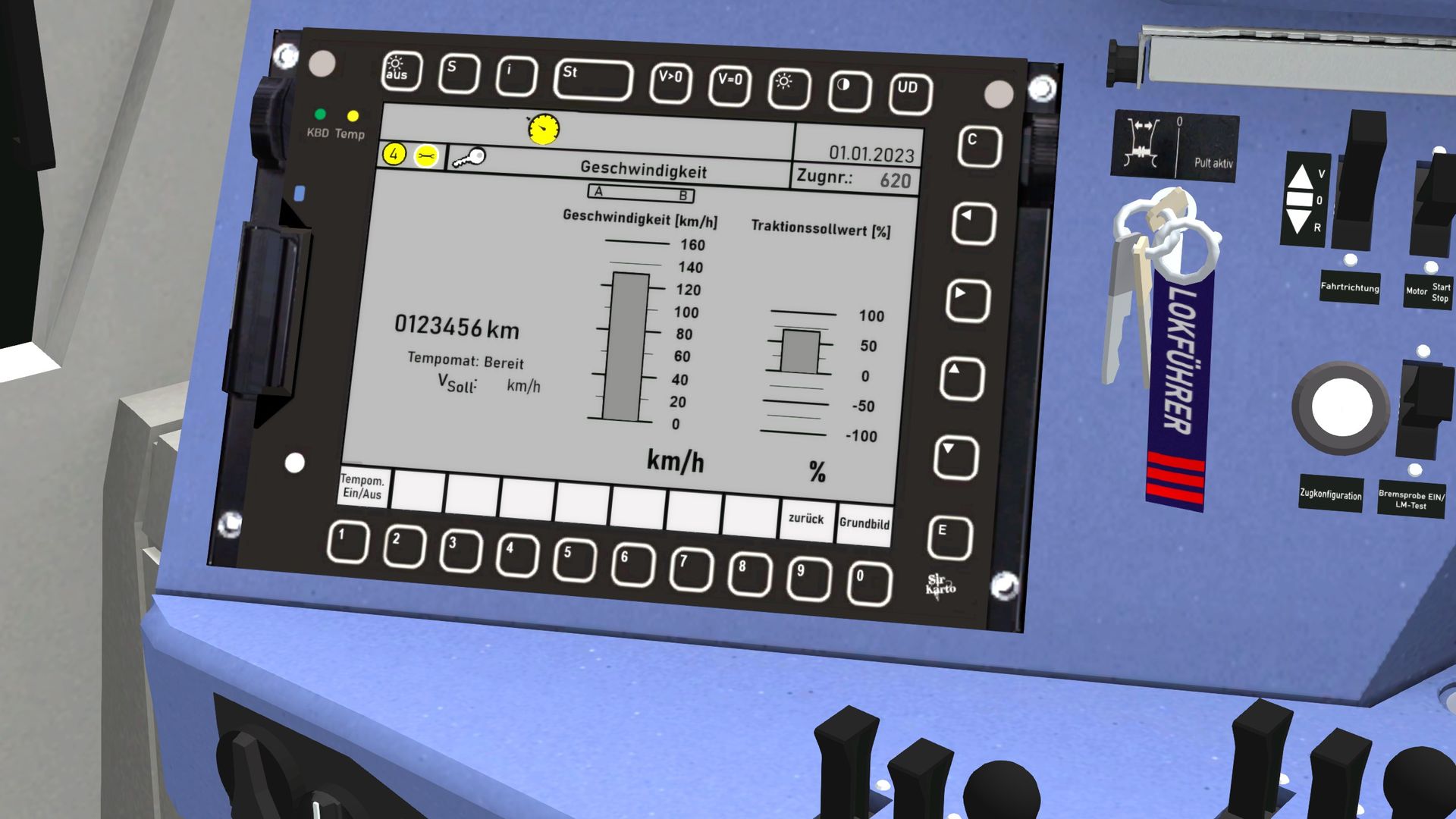 Moin Bevor du beschleunigst, musst du noch die Taste E betätigen, damit die Sperre des Fahrschalters aufgehoben wird.