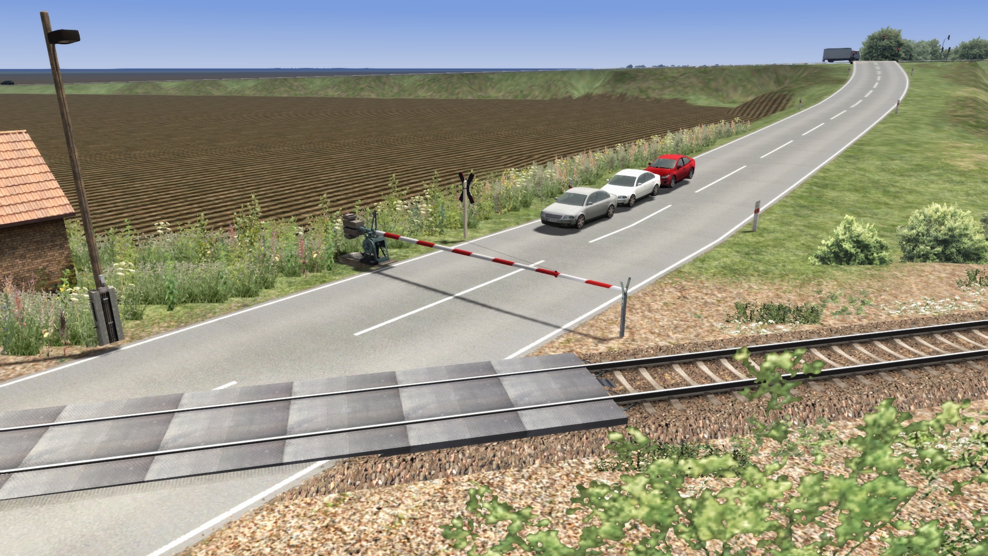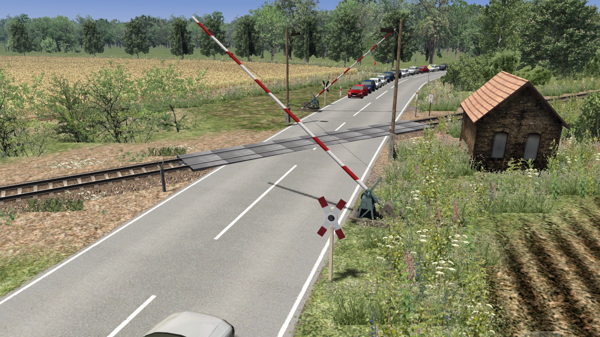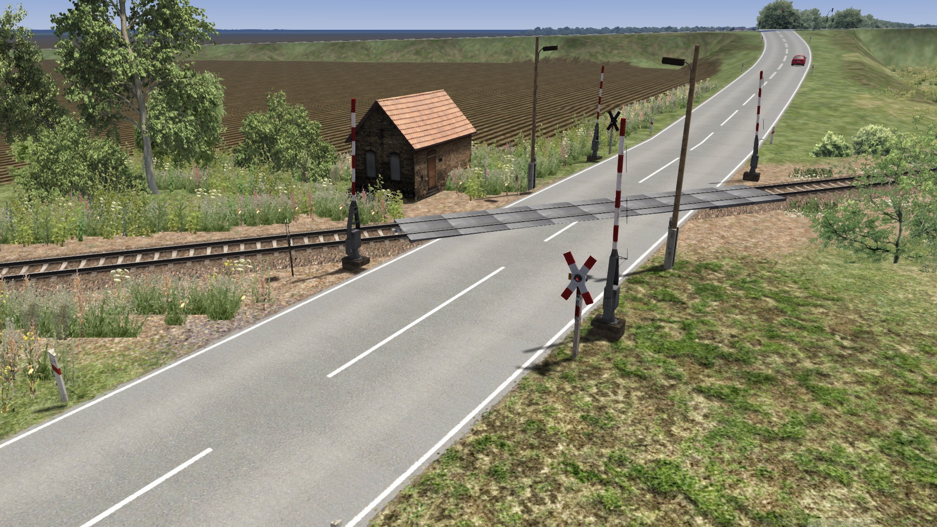 Ich zeige hier mal ein paar Bilder von dem Bahnübergang in Schönebeck Salzelmen in Richtung Eggersdorf. Es sind zwei Varianten einmal mit langen Schrankenbaum und als Halbschrankenanlage. Eigentlich sollten die Schranken parallel zu den Gleisen stehen aber trotz Größenanpassung hat das nicht funktioniert. So stehen sie rechtwinklig zur Straße. Was jetzt noch fehlt ist ein typisches DR Schrankenwärterhaus mit Kurbel und diversen Zubehör wie Blumenkasten und Sitzbank sowie WC. Wer mir da behilflich sein kann sich gern bei mir melden. Ein paar Beispielbilder kommen noch.