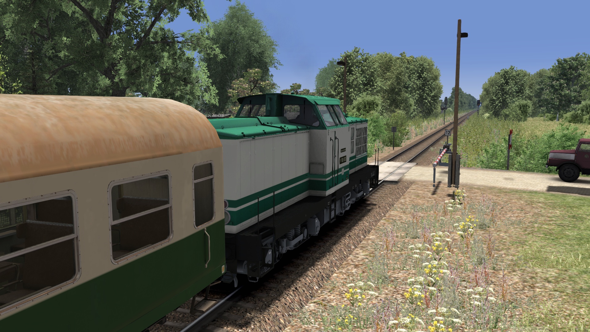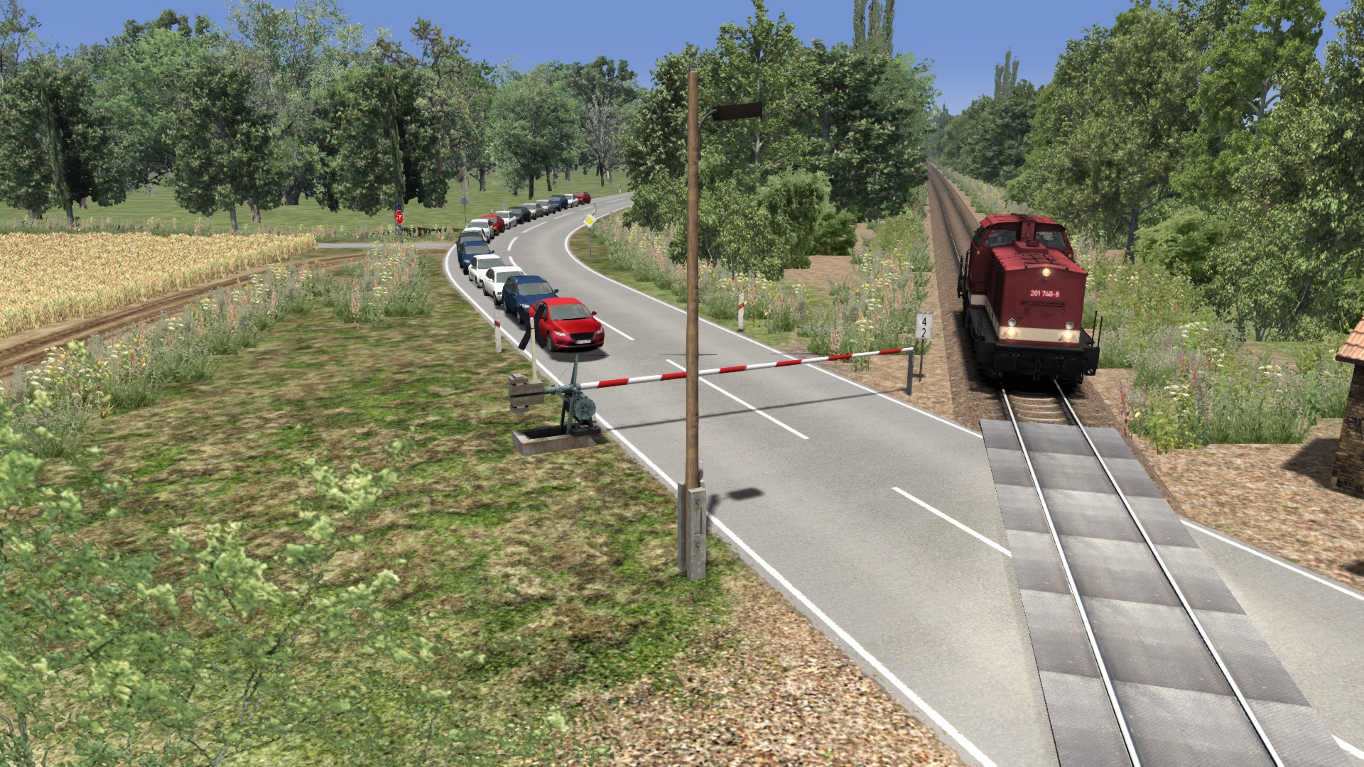 Es wird mal wieder Zeit etwas von meinem Umbau hier zu zeigen. Ein Thema an der Strecke ist den Bahnübergängen gewidmet. Nach einigen Fehlschlägen (Anfängerfehler) bin ich dabei diese soweit es geht der Zeit anzupassen. Eine große Anzahl Schranken stammen von SAD die aber nicht den Zustand der Deutschen Reichsbahn entsprechen. Die werden jetzt ausgetauscht. Das Problem das ich dabei habe liegt in der Darstellung. Ich muß die Dichte von 10 runterschrauben auf Minimum damit mir der TS nicht abschmiert. Dann funktioniert das Setzen der neuen Schrankenanlage bis auf wenige Ausnahmen ganz gut.