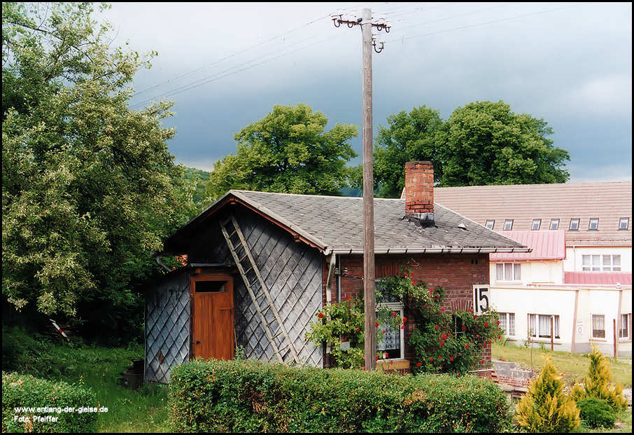 Weiter im Text. Für den Original-Bahnhof in Eggersdorf könnte ich ein externes Toilettenhäuschen gebrauchen. Zu DDR Zeiten hat eines existiert. Leider habe ich keine Originalbilder / Zeichnungen dazu. Von einem Video konnte ich einen Schnappschuß machen der aber von der Qualität nicht berauschend ist. Daher reichen mir ungefähr Maße aus. Wenn also jemand etwas bauen will /kann würde er mir da gut weiterhelfen.