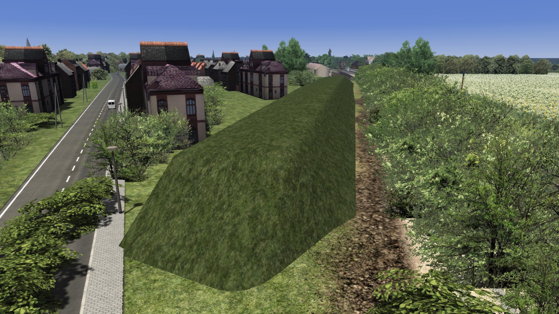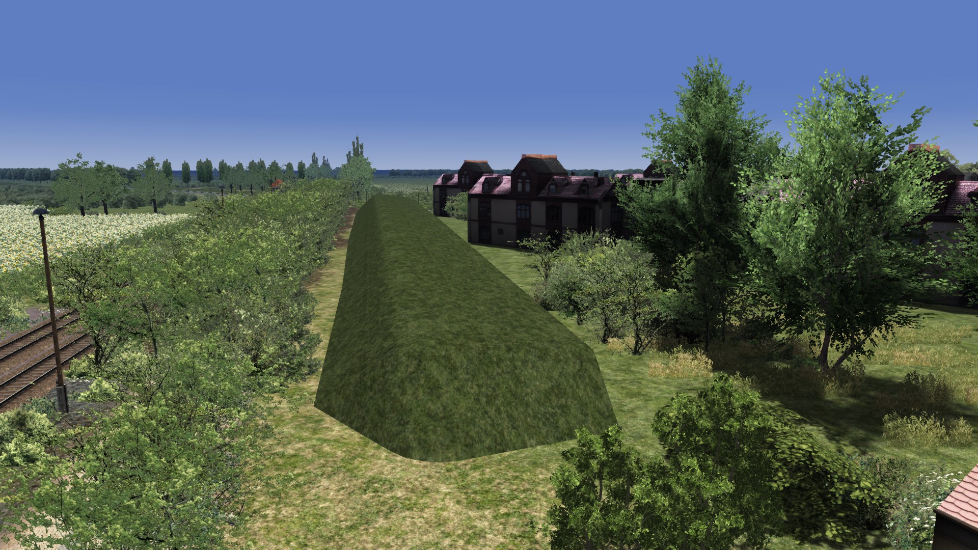 Ich bräuchte mal wieder Eure fachkundige Unterstützung bzw. Rat. Auf den Bildern sieht man einen grünen Wall oder Hügel der sich auch im Untergrund auf die andere Seite der Gleise fortsetzt. Den möchte ich gerne weg haben weil er da so nicht existiert hat. Warum der Erbauer den da platziert hat weiß ich nicht aber er stört jetzt und ich kann ihn nicht löschen oder wenigstens in der Versenkung verschwinden lassen.