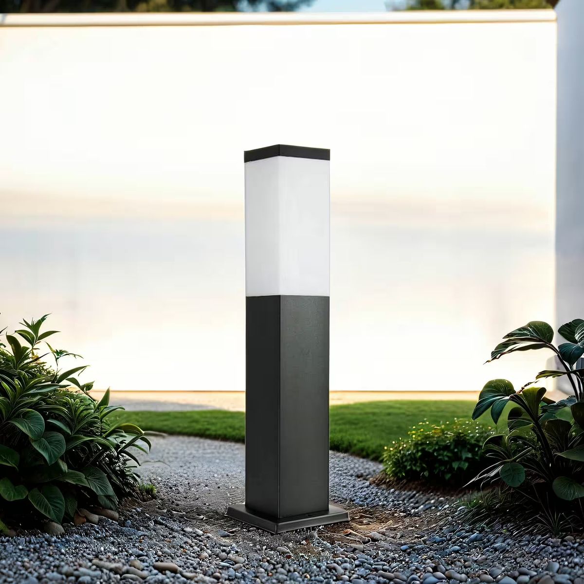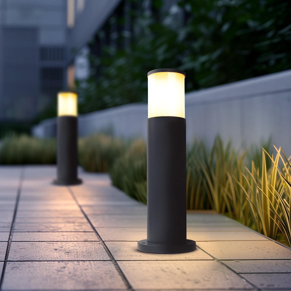 Zu den Pollerleuchten für den Parkplatz oben hier mal ein paar Modelle. Maßangaben gebe ich nicht an das kann selbst entschieden werden. Es sollte zu den Büschen von der Höhe passen der Durchmesser kann etwas größer sein wie auf den Bildern. Zur Farbe kann von Hellgrau über anthrazit bis schwarz gewählt werden. Die Lichtfarbe kann warmweiß oder kaltweiß ausfallen ähnlich einer HQL bzw. einer NA Birne entsprechen.