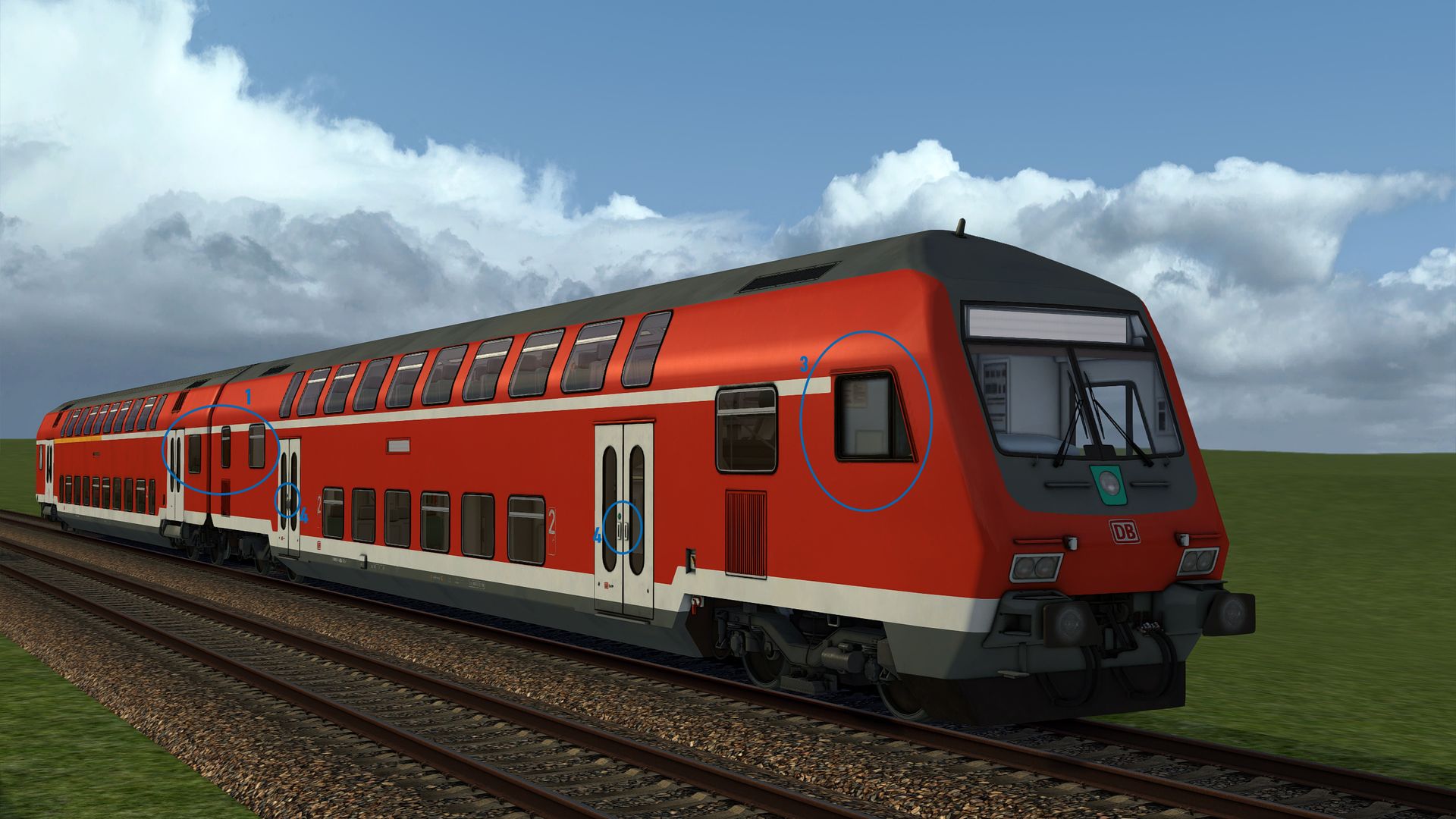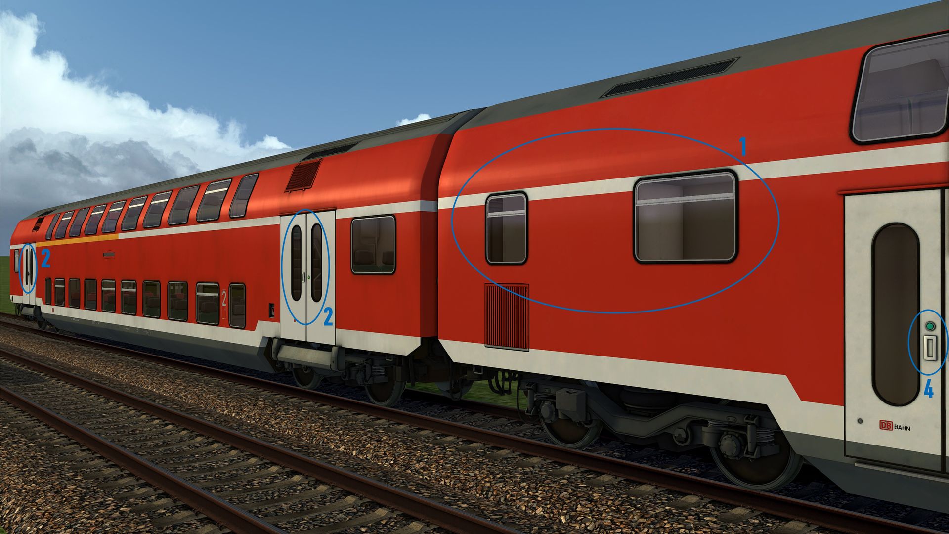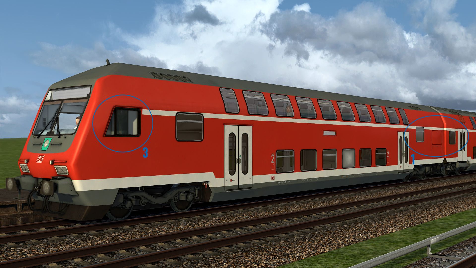 - Die Fenster im Bereich der Wagenübergänge sind in Relation zum weißen Strich der Klassenmarkierung zu hoch, denn die obere Kante der Fenster endet real unterhalb des weißen Striches und nicht auf dem Strich. Für den Mittelwagen siehe Vergleichsbilder von vt_professional, für den Steuerwagen vgl. angehängtes Bild und Bilder auf dieser Seite.