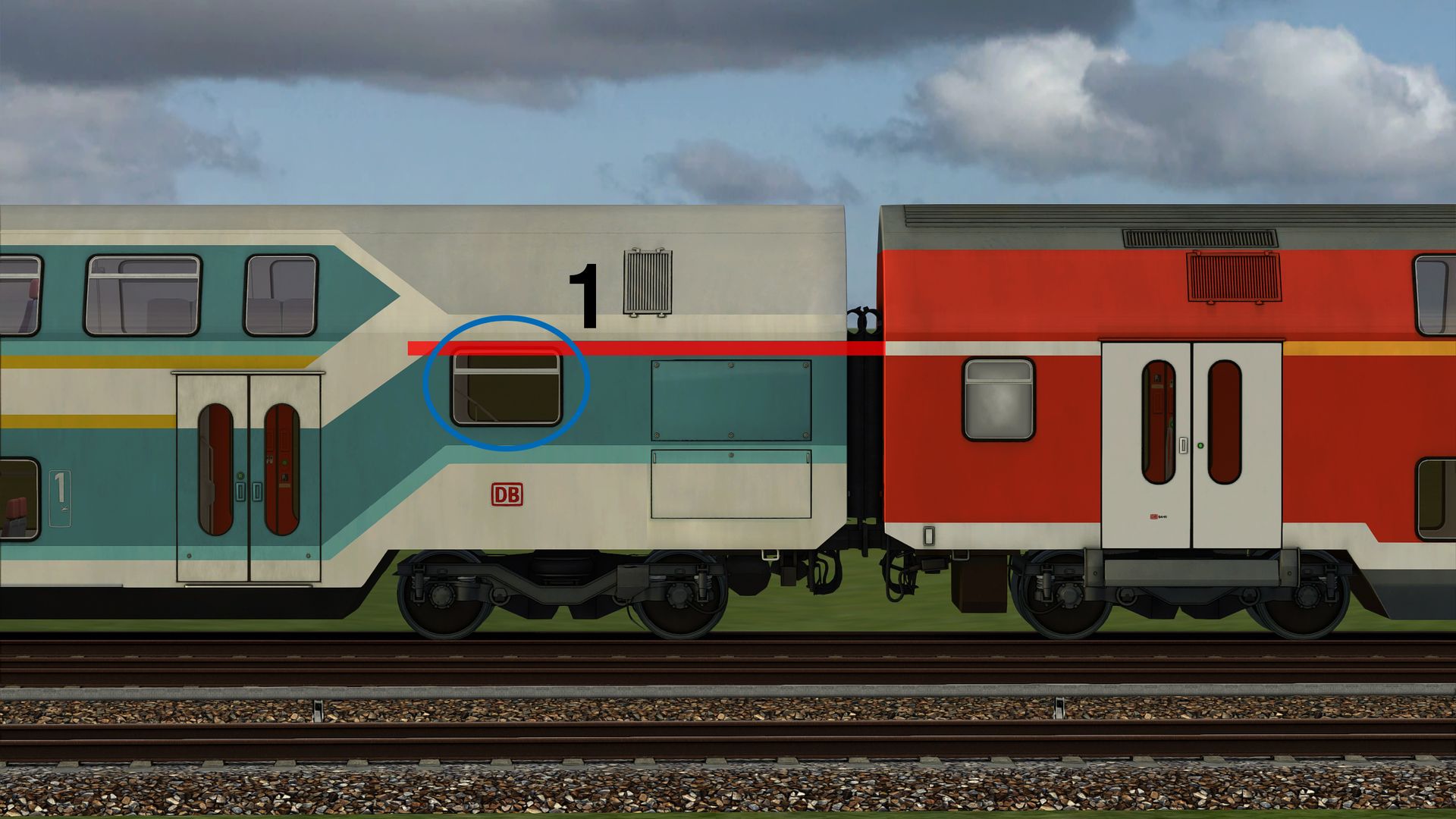 1. Das Fenster am Wagenübergang des Steuerwagens ist zu hoch. Wie bei den Mittelwagen, müsste dieses unter den weißen Strich verschoben werden.
