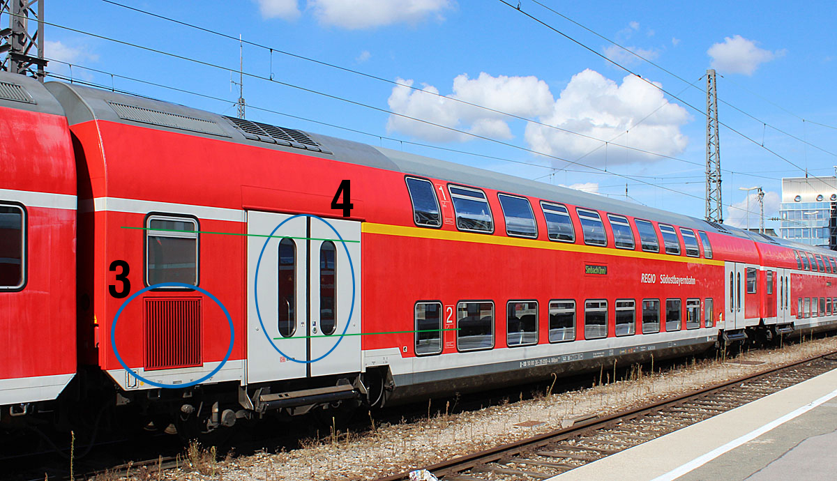 3. Die Lüftungsgitter unter den Fenstern an den Wagenübergängen müssten eher quadratisch statt rechteckig sein. So würde dann auch die tiefere Positionierung dieser Fenster übereinstimmen.