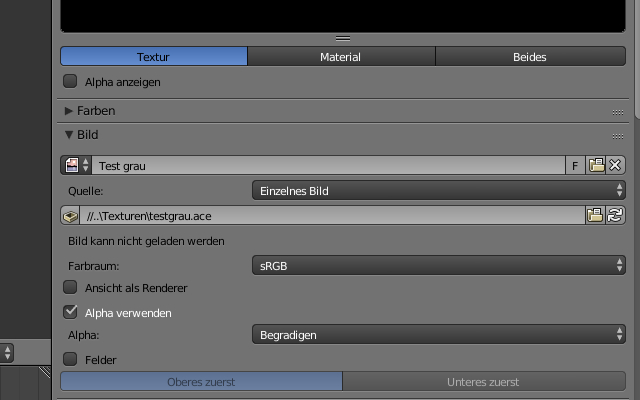 Ich habe jetzt alles noch einmal gelöscht und versucht neu zu exportieren. Dabei ist mir aufgefallen, dass meine .ace nicht geladen werden kann. Ich habe im GIMP eine neu pinke Textur erstellt, damit man sofort eine Änderung sieh, aber auch diese .ace lässt sich nicht laden.
