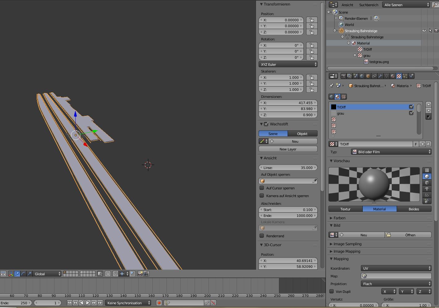 ERROR: Blender Mesh object 'Straubing Bahnsteige' has a face with no texture assigned.So siehts im Blender aus: