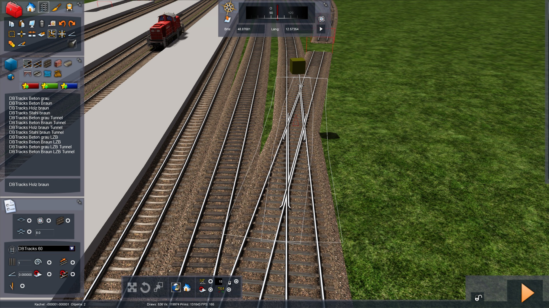 eigentlich wollte ich zunächst keine Texturen verwenden. Es sollten lediglich die drei Bahnsteige, wie im ersten Beitrag sichtbar, als graue Platzhalter in den TS exportiert werden, damit ich an der Strecke weiterbauen kann.