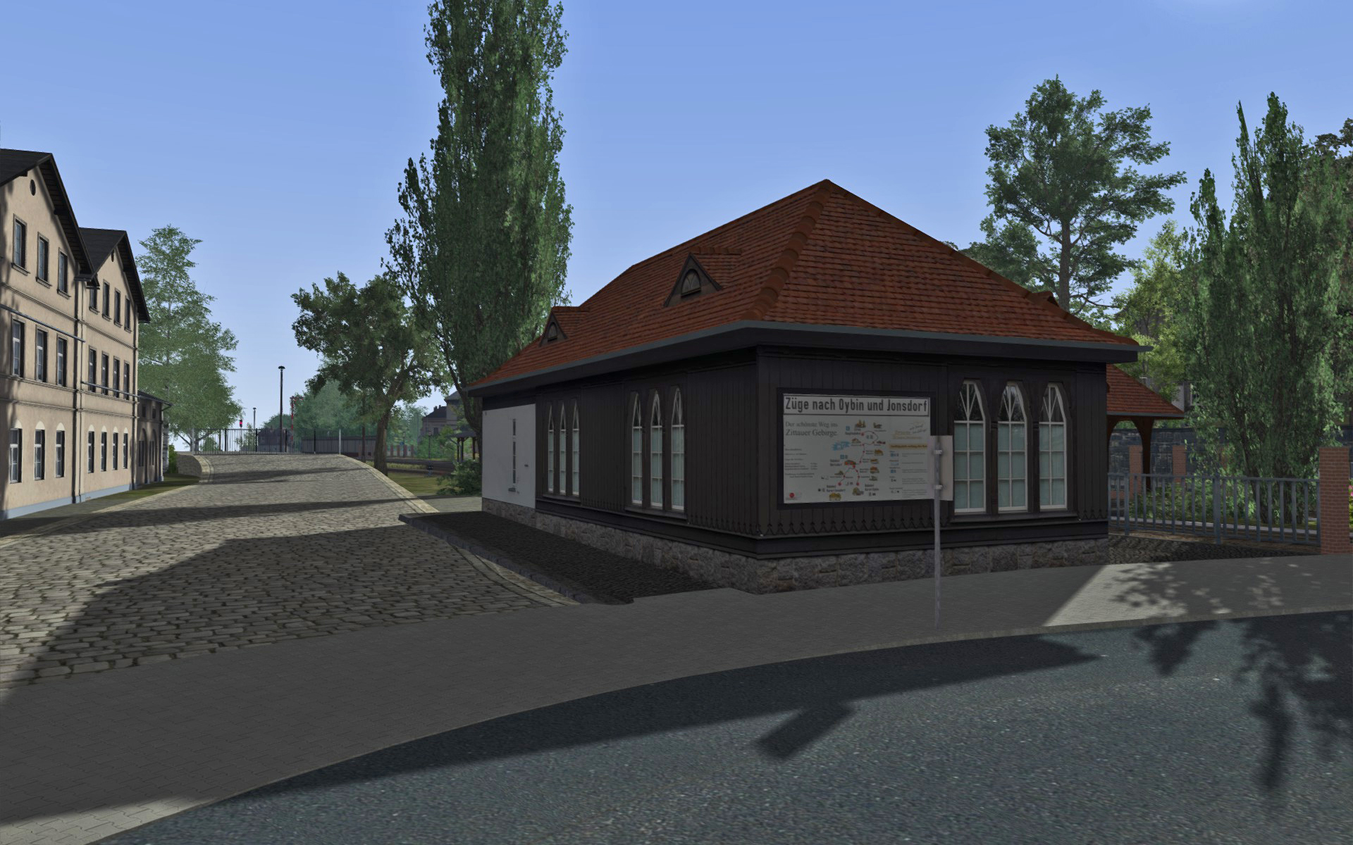 Vor rund eineinhalb Jahren begann ich, erste eigene Objekte und Gebäude zu bauen (Pfeif- und Läutetafel, Durchläuteendtafel, Bahnsteigdach Bertsdorf, Bahnhof und Bahnsteigdach Zittau Vorstadt und 2 Umgebindehäuser). Leider musste ich aufgrund gesundheitlicher Probleme die Arbeiten einstellen und nach dieser Zwangspause war das mühsam erarbeitete "Wissen" in Sachen Objektbau in Blender und in den TS exportieren wieder vollständig aus den Hirnwindungen entwichen. Mir dies neu anzueignen, dafür fehlt mir derzeit der Antrieb. Ohne nachgebaute Original-Gebäude, zumindest der Bahnhöfe und Haltepunkte, macht ein Weiterbau in meinen Augen aber auch keinen Sinn.