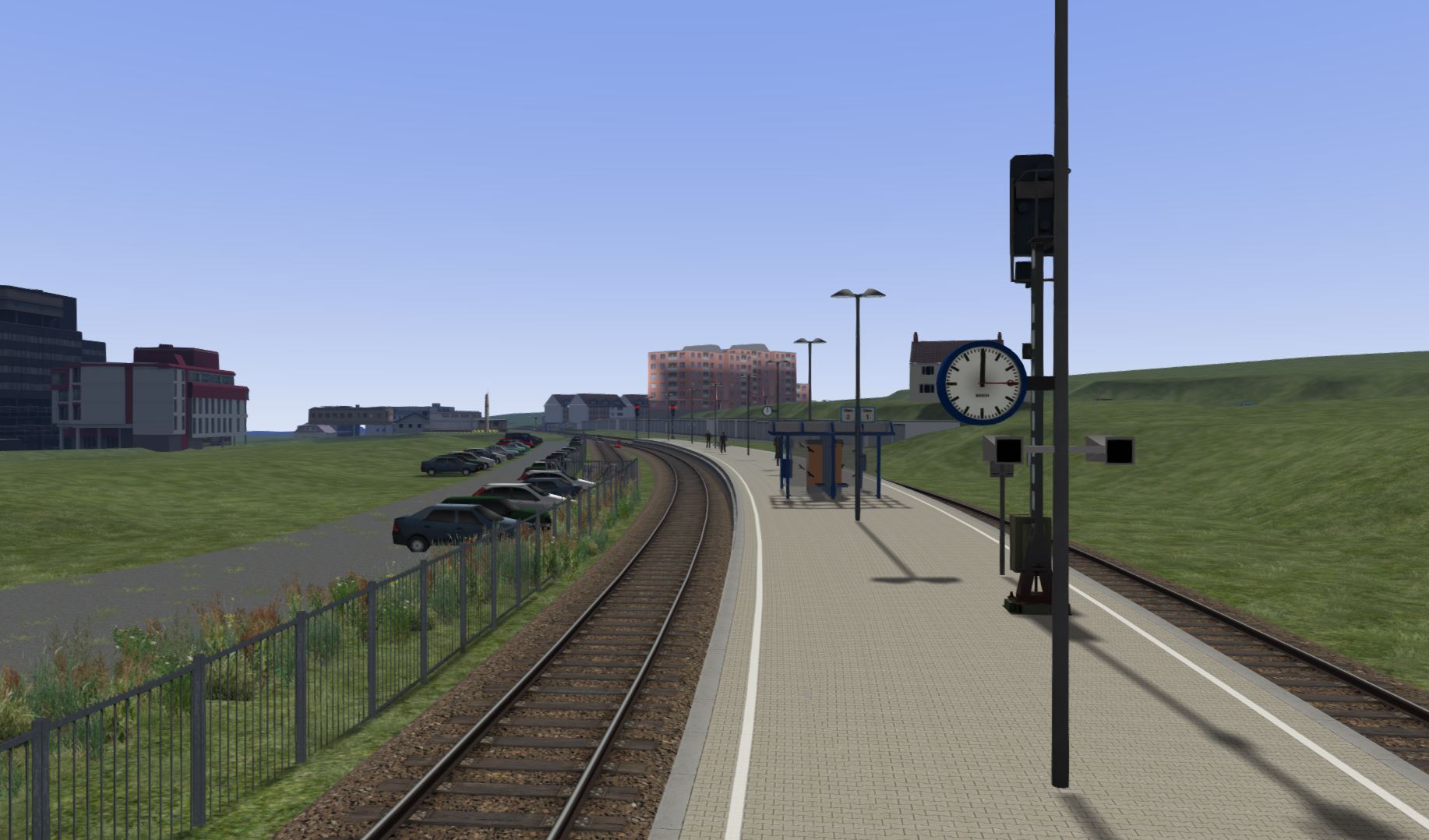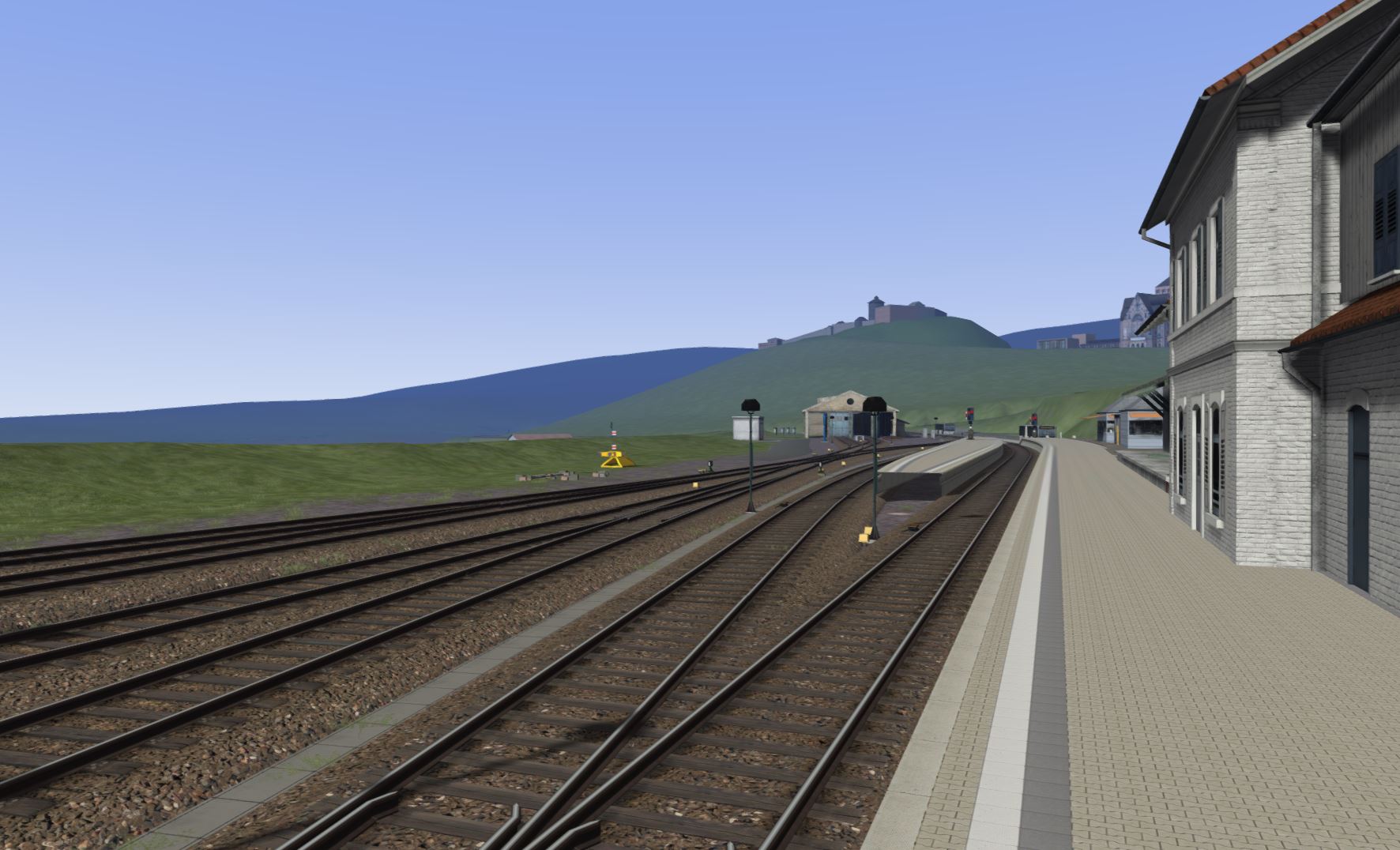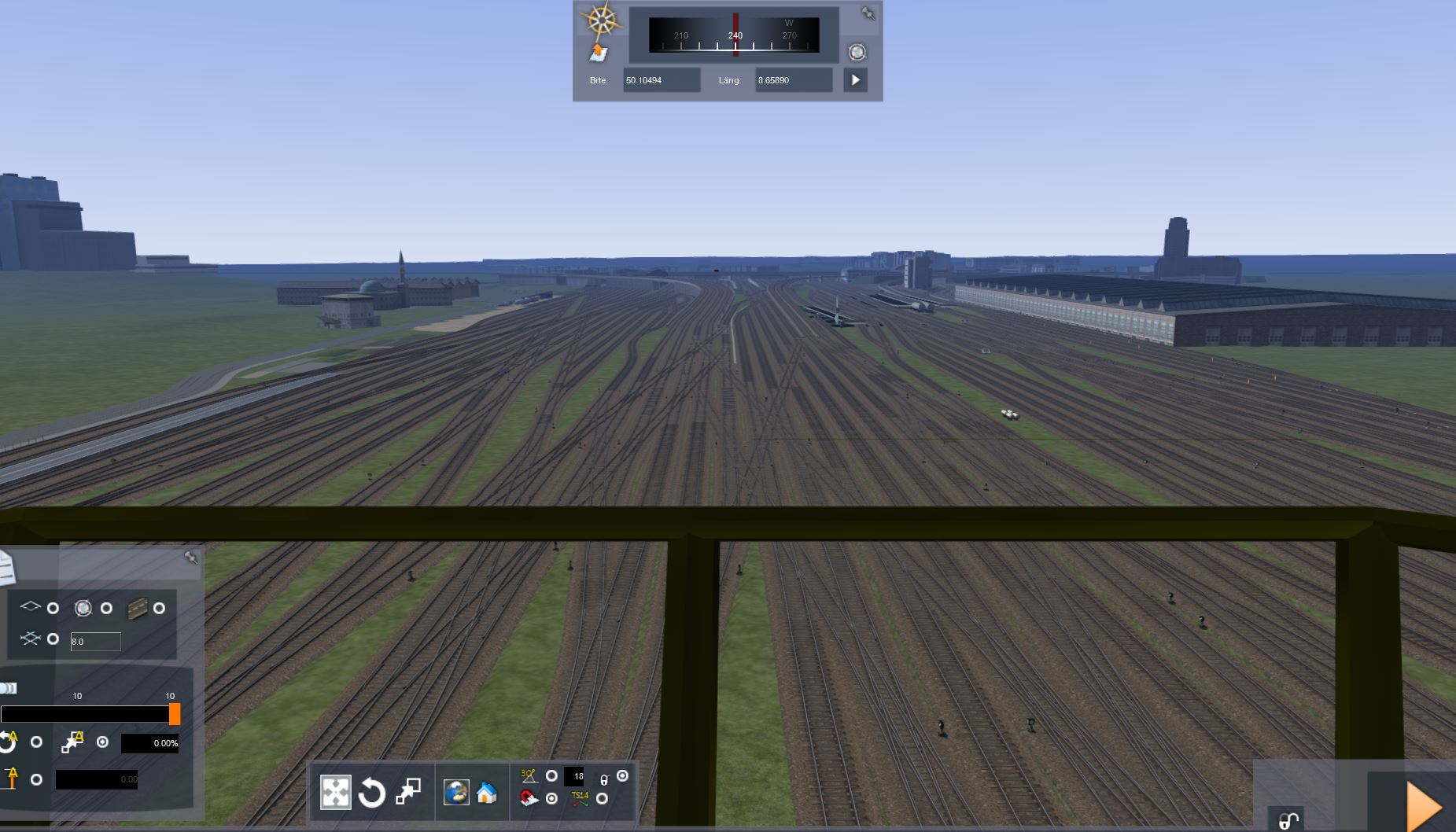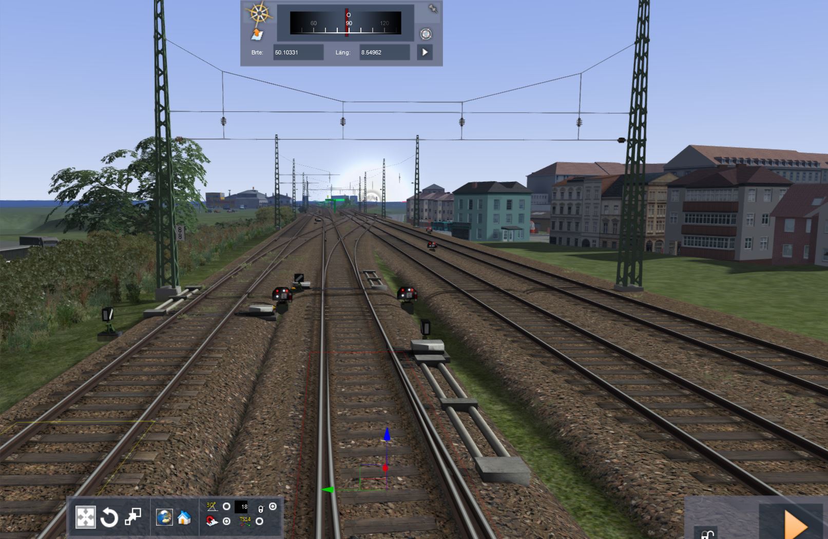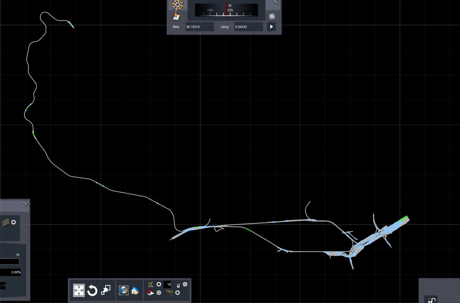 Die Strecke liegt, das Höhenmodell stimmt auch (alles auf Google Earth-Basis), nun wird immer wenn Zeit ist, die Gemeinden rund um die Bahn gwbaut. Zum Schluss gehts dann wieder an den Hbf, denn der ist zwar Gleistechnisch fertig, aber keine Signale, Oberleitung und Bahnsteige.....kommt Zeit kommt....