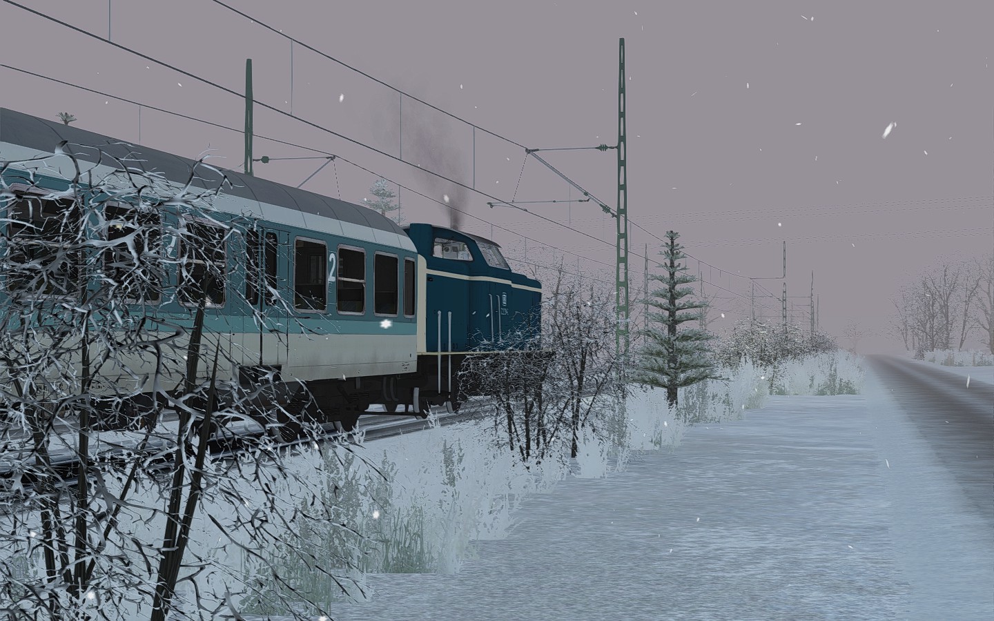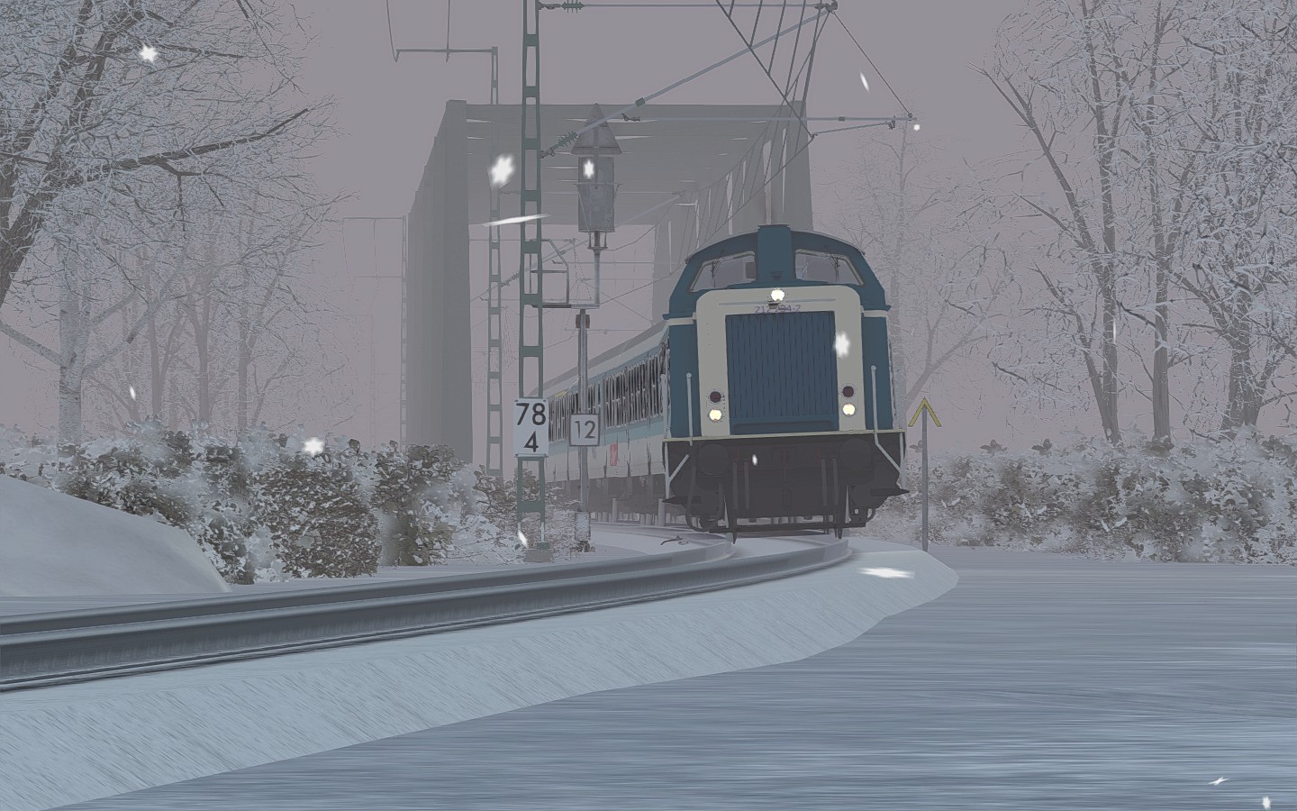 212 234 führte einen Sonderzug im tiefsten Winter von Garmisch - Partenkirchen nach München. In Weilheim wurde 212 ans Zugende angehängt und eine Dampflok vorne angekuppelt.