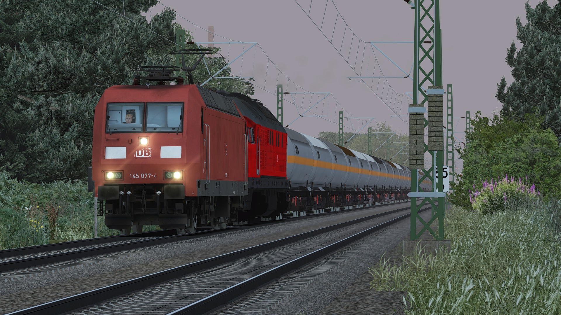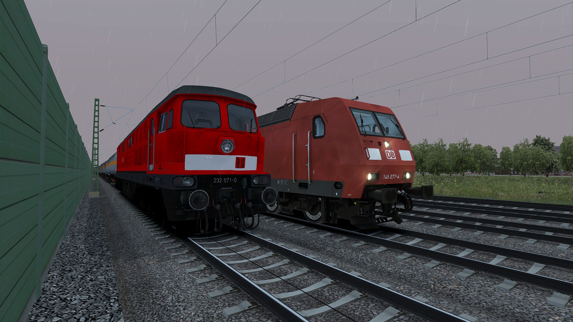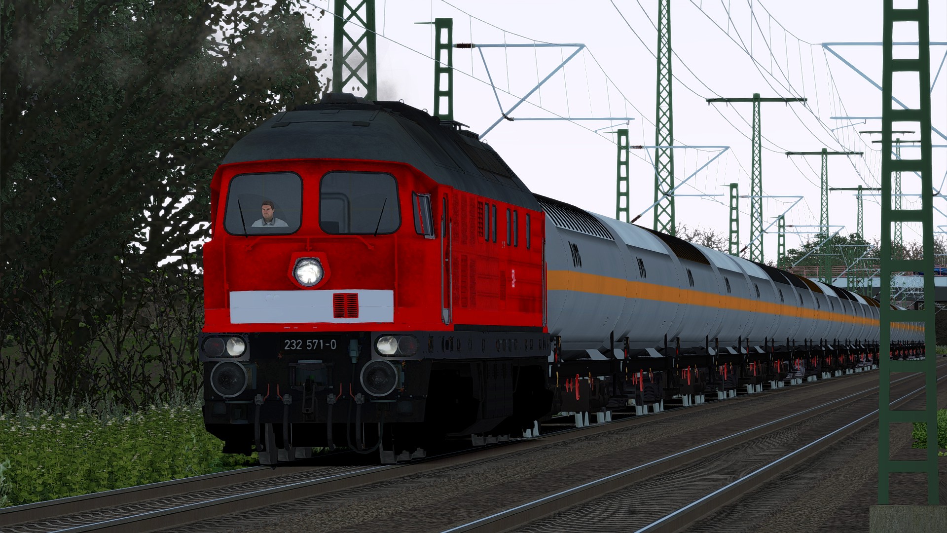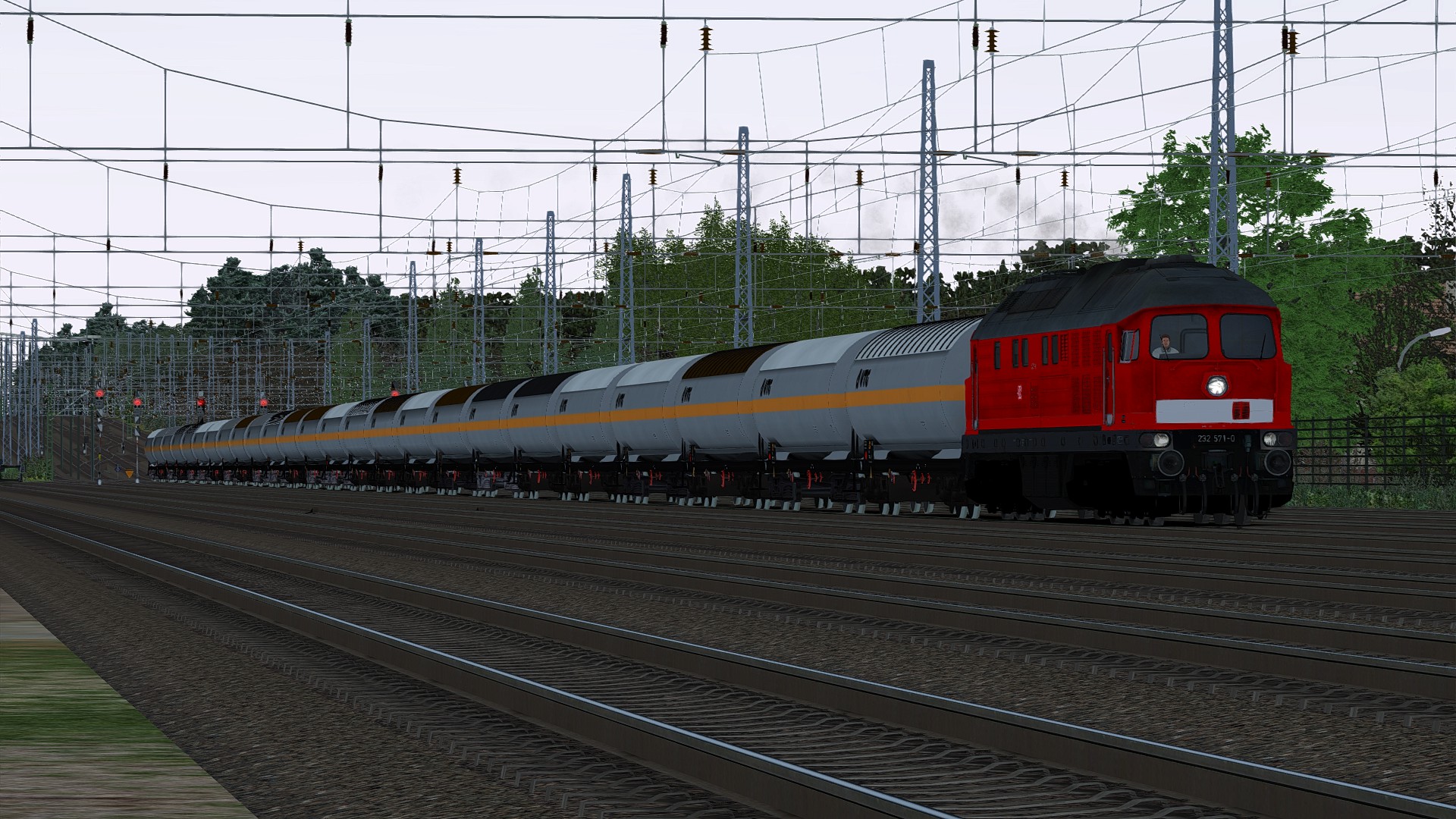 232 571 mit einem Schwerölzug von Seddin nach Ludwigsfelde. Dort wurde der Zug auf ein Ausweichgleis umgeleitet, wo dann 145 077 vorgehängt wurde. 232 571 lief ab da kalt mit. In Bitterfeld angekommen, wurden dann 145 077 und 232 571 vom Zug abgehängt und in die Abstellung gestellt.