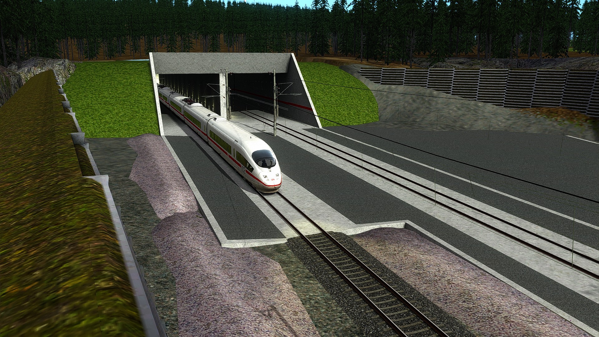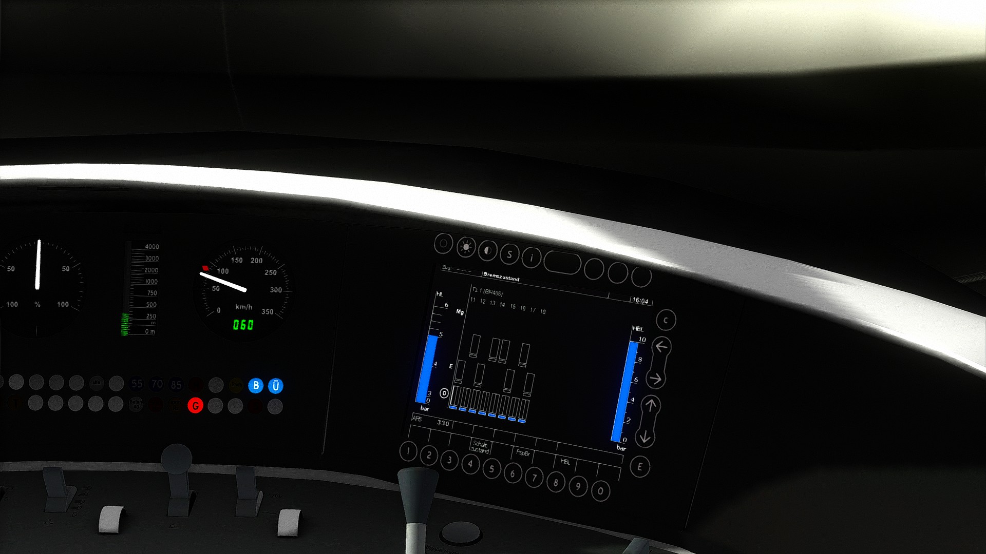 ... keine Ahnung warum der eine Tunnel immer wieder rot ausgeleuchtet ist...(Das tolle an dem ICE 3, welcher bei MK mitgeliefert wird ist, dass dieser auf dem rechten MFD anzeigt, auf welche Geschwindigkeit die AFB eingestellt ist...