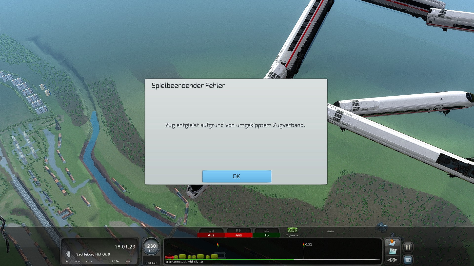 3. Wenn ich mit einem Zug fahre, dann stürzt mir der Simulator jedes Mal ab, wenn ich in die 8er Kamera gehe oder die 9er Karte öffne.