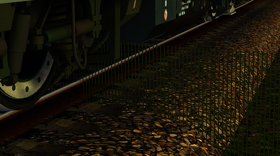1.2 , Gegenstände liegen auf den Gleisen einfach rum. Mal ein Zaun Mal ein Baum.