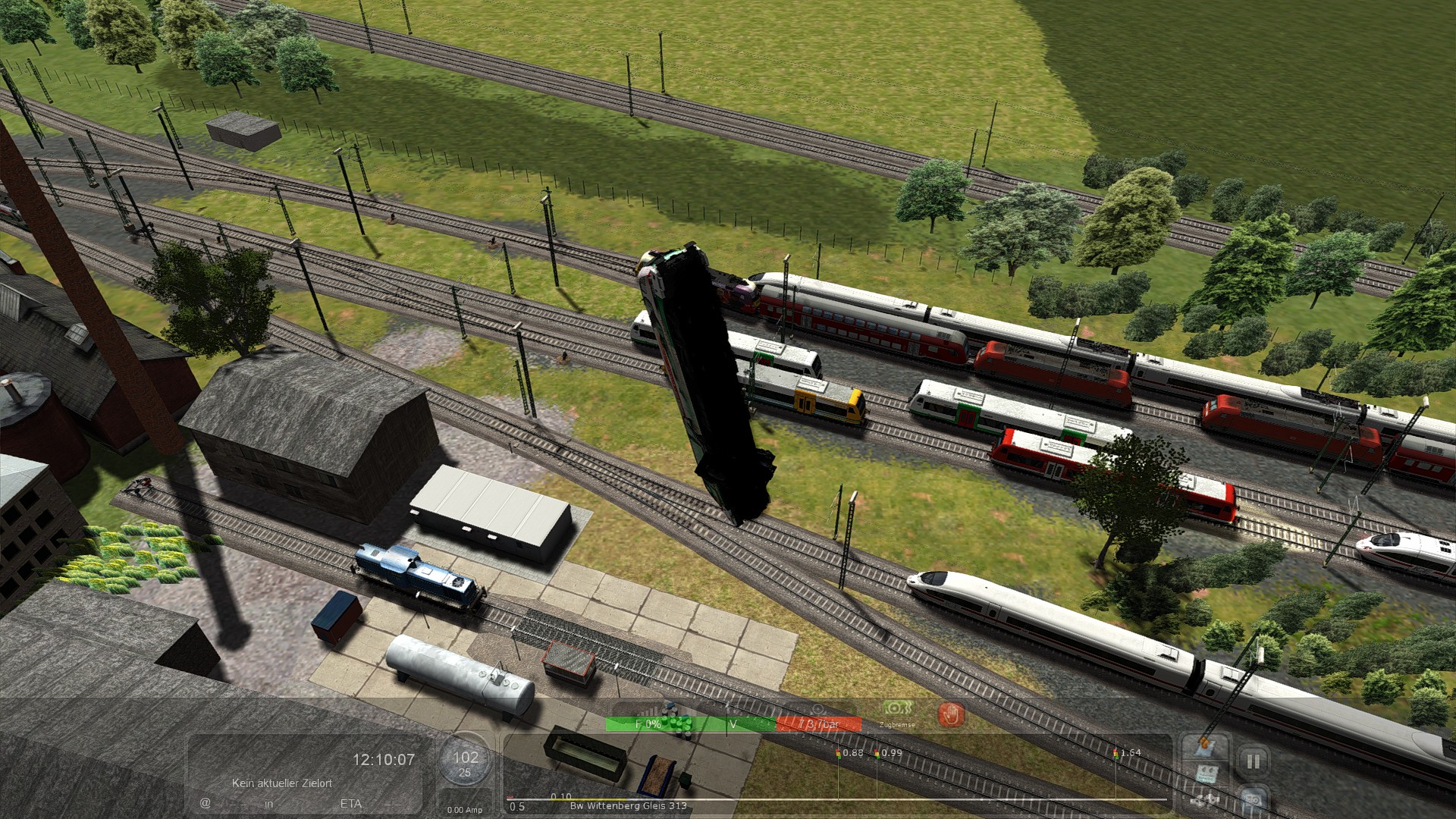 Die Zwangsbremsung kam wohl, weil ich die Szeneriedichte nicht auf max. gestellt habe und deshalb eine Tafel nicht geladen worden ist, welche