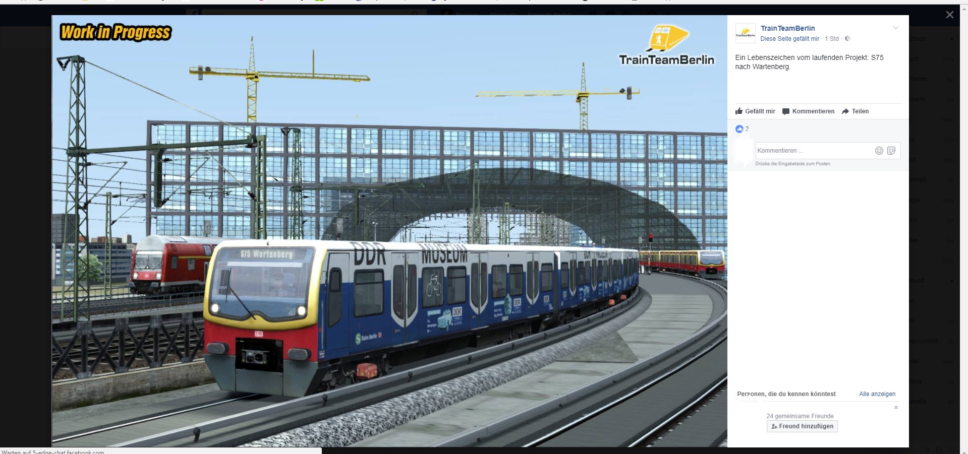 Nach einigen Spekalutationen beim letzten Post von TTB, ist es nun doch raus: TTB baut an der Berliner S75 von Wartenberg bis Westkreuz oder Spandau (früherer Linienverlauf) und implementiert somit die Berliner Stadtbahn in den Train Simulator.