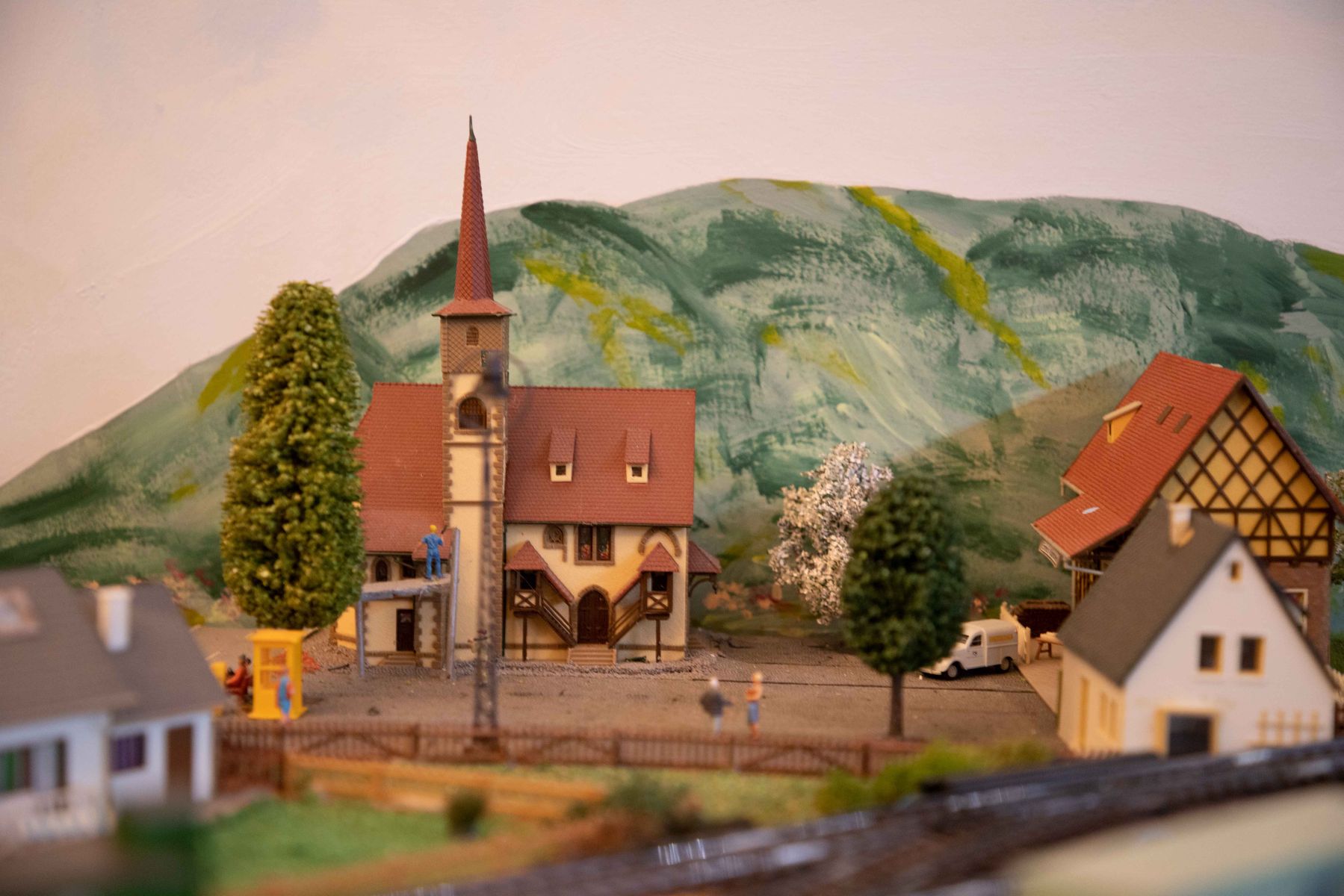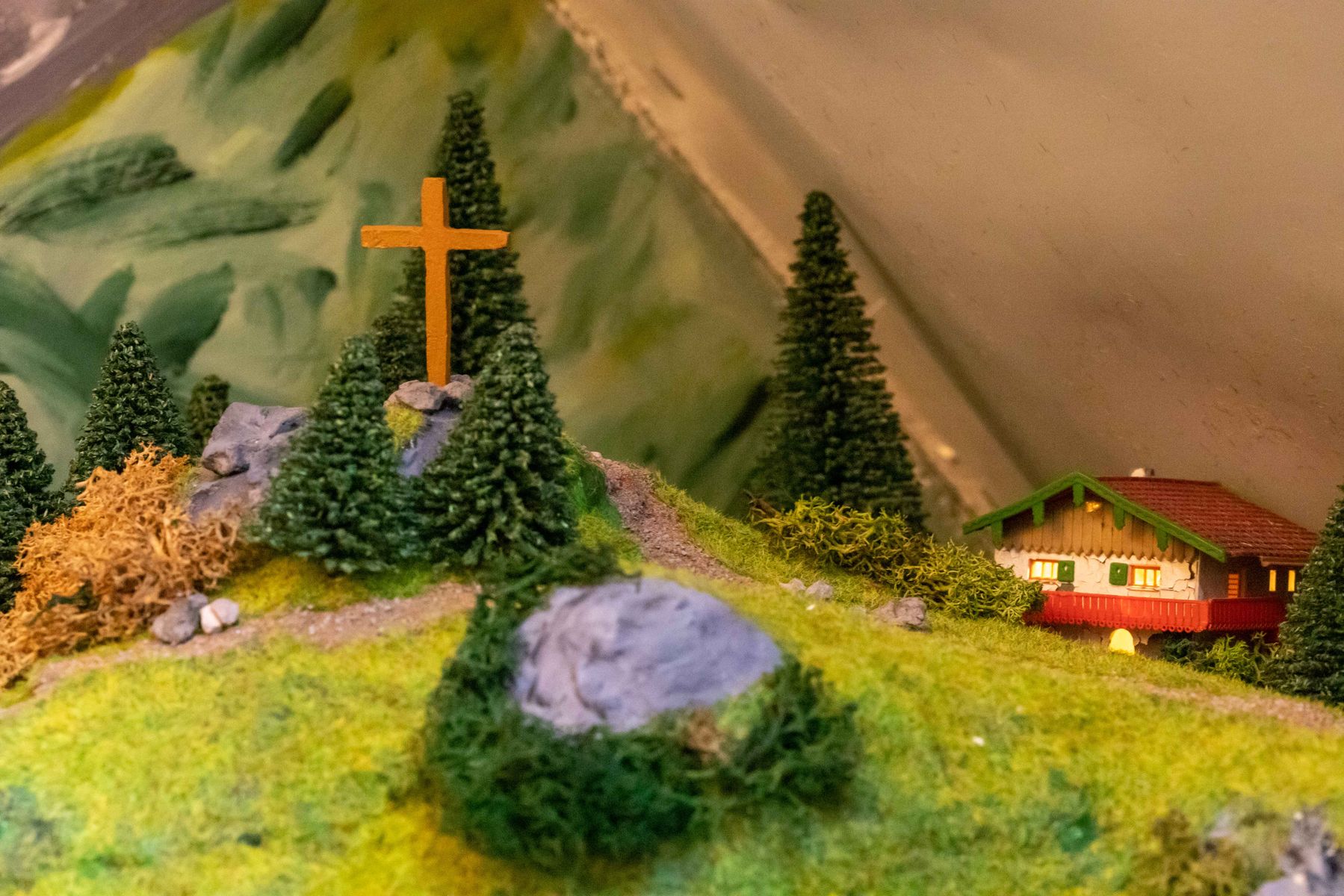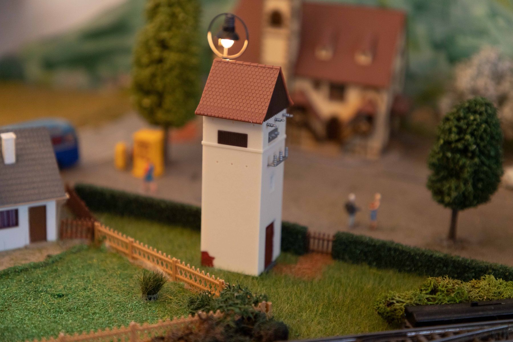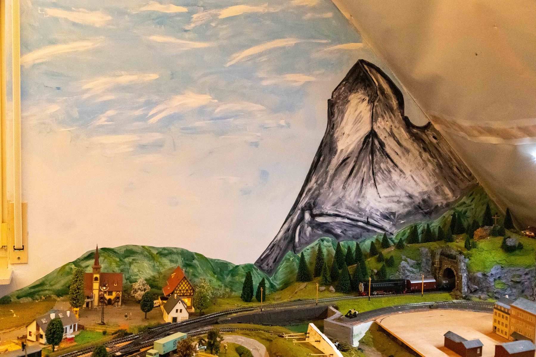 ich dachte ich stelle hier mal ein paar Bilder von meiner im Moment im bau befindlichen Anlage rein. Die Anlage ist die Erfüllung eines lange gehegten Traumes, meine alte Märklin H0 8-Anlage zu erweitern. Geesteuert wird un alles mit Digital über die Mobile Station 2, Weichen werden weiterhin analog über die Stellpulte gesteuert, der Strom für die Weichen und Lichter kommt vom alten analgo Transformer. Vieles wurde handgemacht, beispielsweise Strommasten u.ä., der Rest von namhaften Herstellern als Bausätze gekauft. Einige der Gebaude auf dem neuen Teil wurden mir durch die Aufgabe einer anderen Anlage übergeben, mal sehen, ob ich da das ein oder andere nicht wieder hünbsch machen kann. Die Bergasung erfolgt elektrostatisch mit dem Gasmaster von Noch.