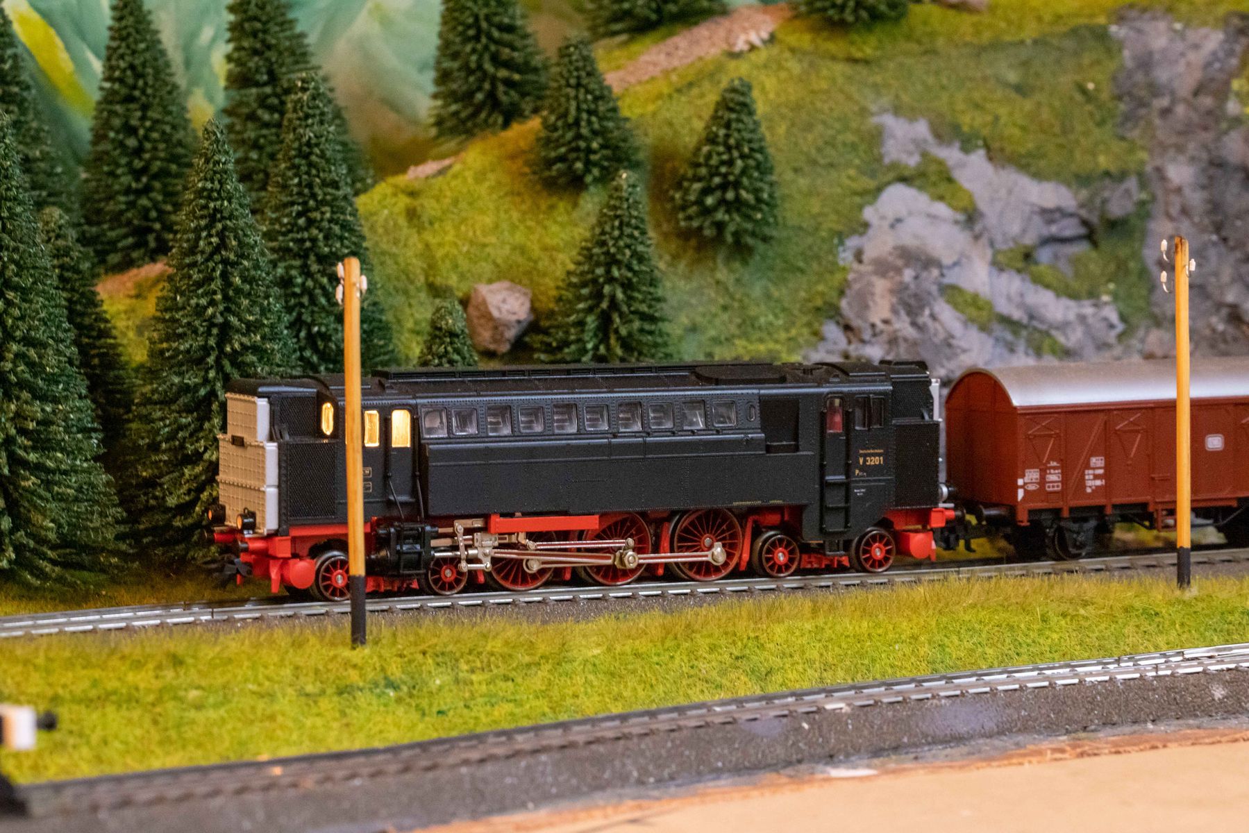 Die neu umgebaute Märklin V3201 mit 5-Pol Hochleistungsmotor und ESU Lokpliot V5. Hat alles absolut problemlos funktioniert und die neu eingebaute Führerstandsbeleuchtung lässt sich problemfrei schalten. Danke für alle, die mich bestärkt haben.