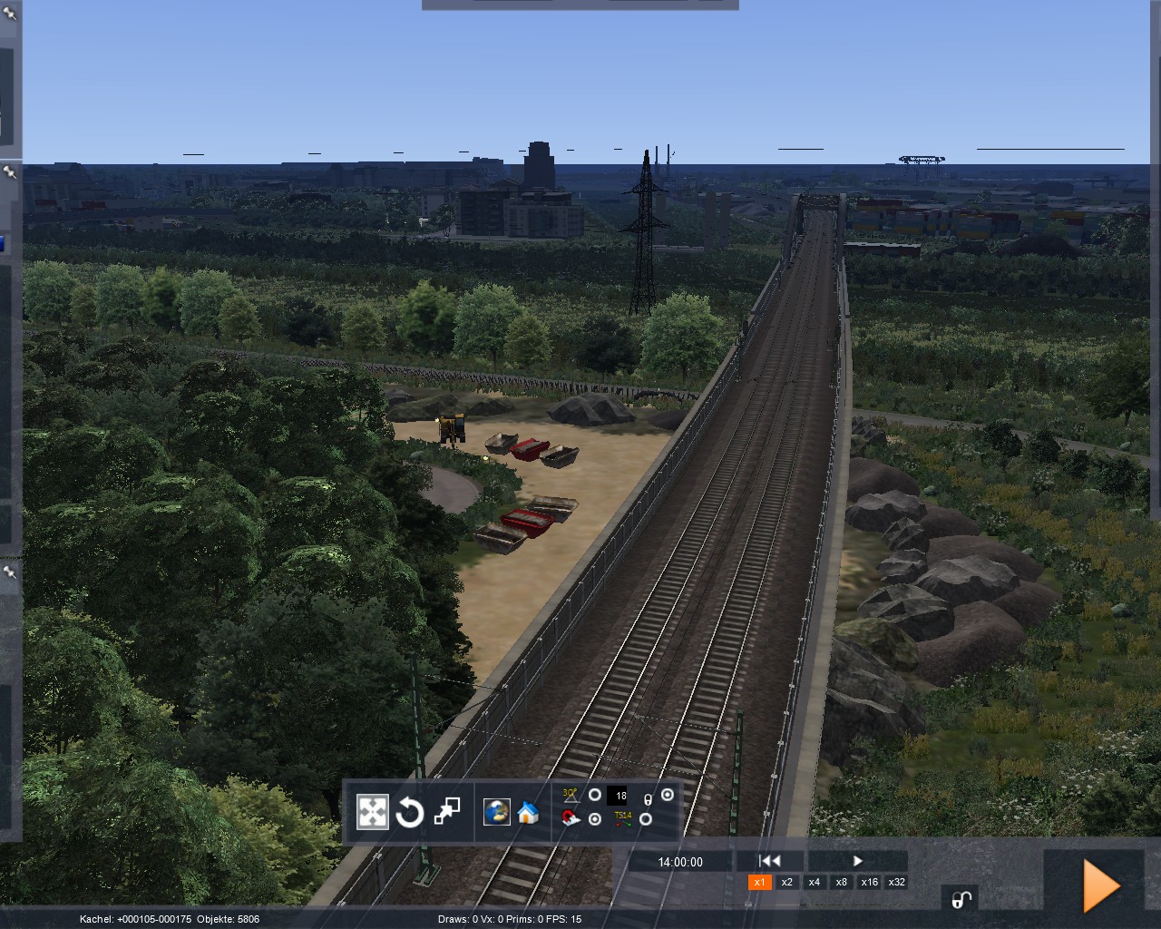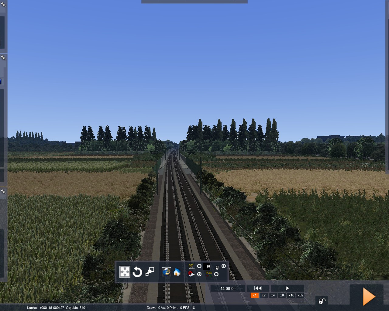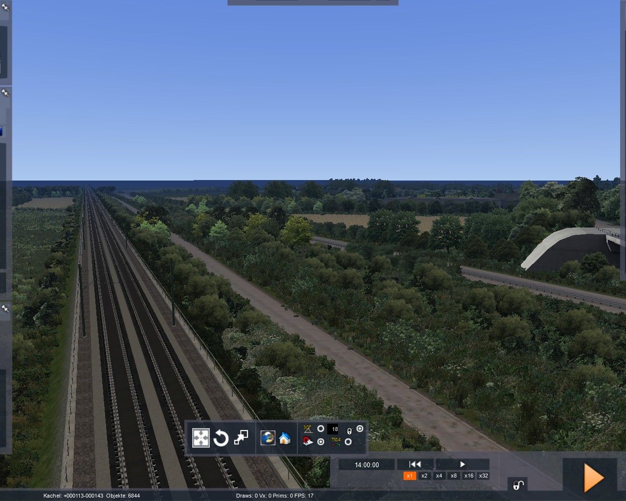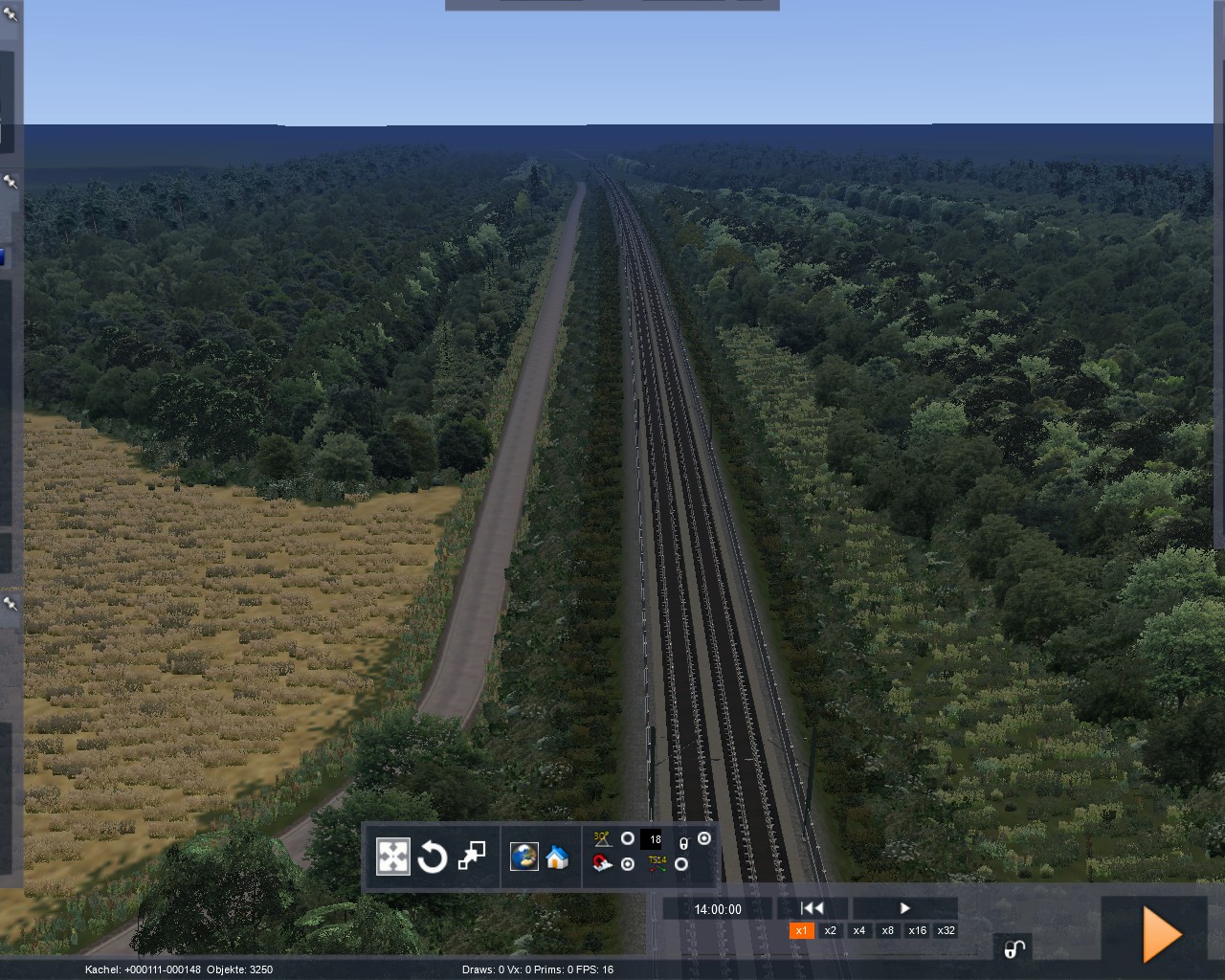 adorm: Bei meiner Strecke wurde als Grundlage M-A verwendet und in deren Trackrule sind die Gleisabstände 4m. Ich habe mir auch mal überlegt, die Gleisabstände auf 4,6m zu erhöhen. Auf der NBS wäre das ja kein Problem, aber ich müsste den Raum Frankfurt, Mannheim und den Ranggierbahnhof umbauen und anpassen. Ich wollte diesen Aufwand jedoch nicht betreiben und die 4m finde ich persönlich nicht dramatisch. Zum Odenwald ist zu sagen, dass ich meine Map auch irgendwo abbrechen muss. Ich kann die Landschaft jetzt nicht 20 km breit machen. Ich kann eventuell im Hintergrund die Berge noch machen, aber den Rest werde ich sein lassen.
