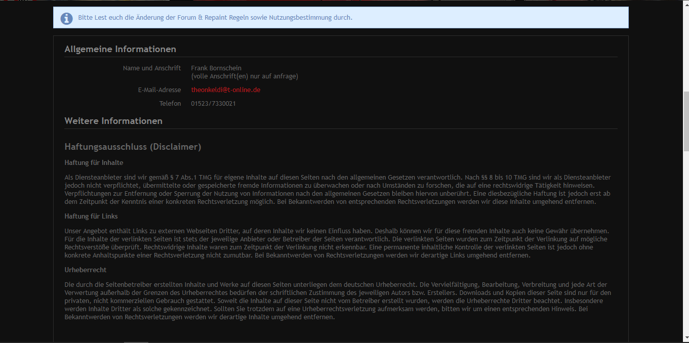 Du kannst auch evtl. mal versuchen freundlich über die Email von dem "Forenbesitzer" nachzufragen.