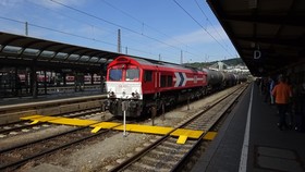 Eine Österreicherin durchquert mit einem Güterzug Ulm Hbf.