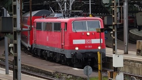 Eine 111 als Sonderzug zur Gamescom im Kölner Hbf.
