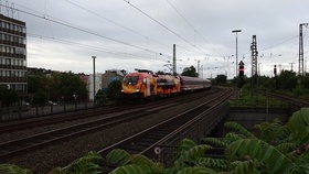 Eine Stopfmaschiene in Düsseldorf Hbf.