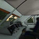 Der Führerstand wurde mit genauso viel Liebe zum Detail erstellt. Alle Knöpfe und Schalter sind modelliert. Bedienbar sind leider nur wenige. Alle gewohnten Funktionen sind jedoch verfügbar, also Sanden, Fernlicht oder Führerraumlicht. Zum Aufrüsten muss man die Bremsen entsperren, den Richtungswender einlegen und kann dann losfahren. Der Zug verfügt über eine erweiterte Türsteuerung, welche sich mit STRG+Shift+T aktivieren lässt. Damit muss man die Türen nach dem Öffnen manuell wieder verriegeln.