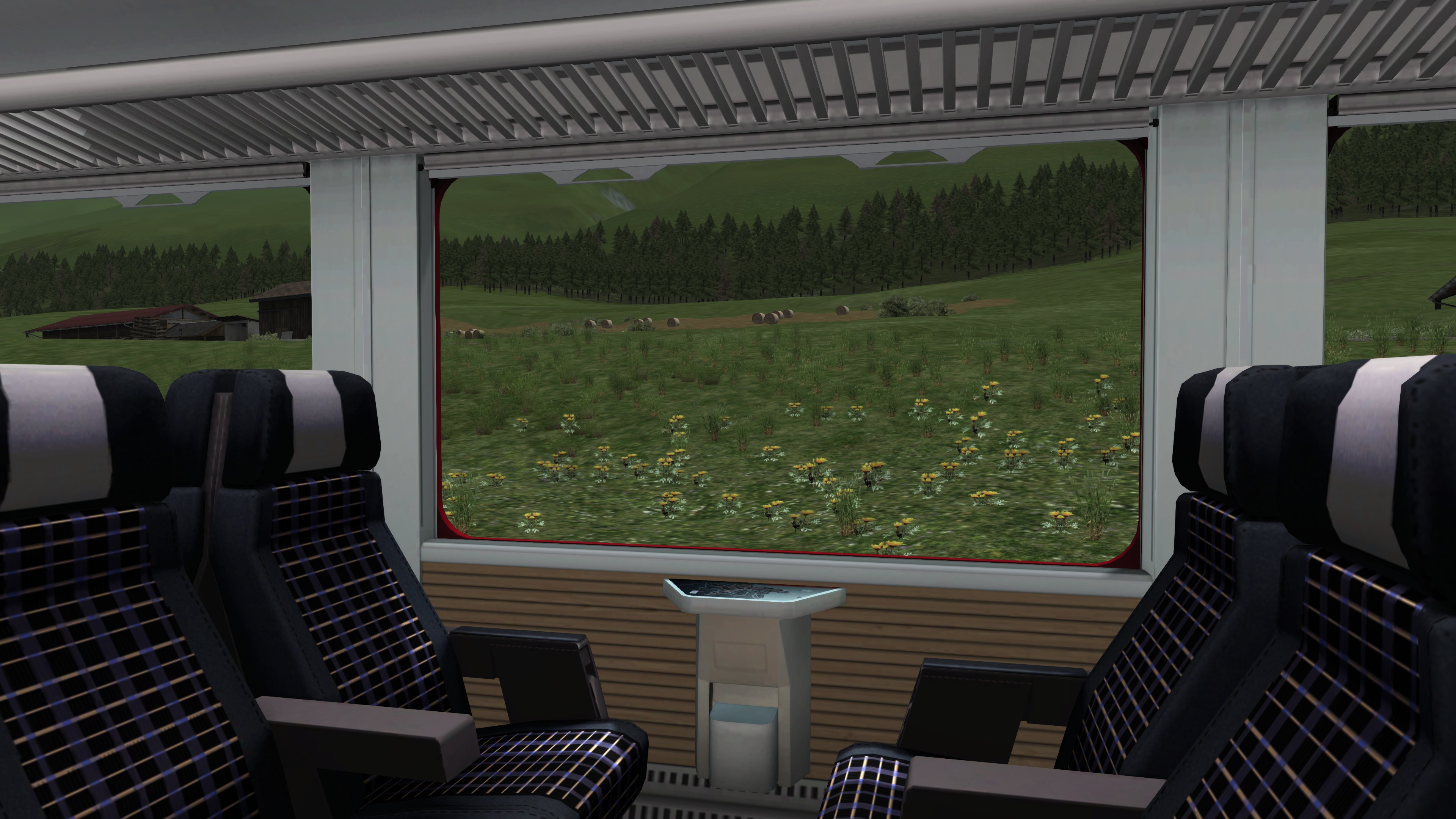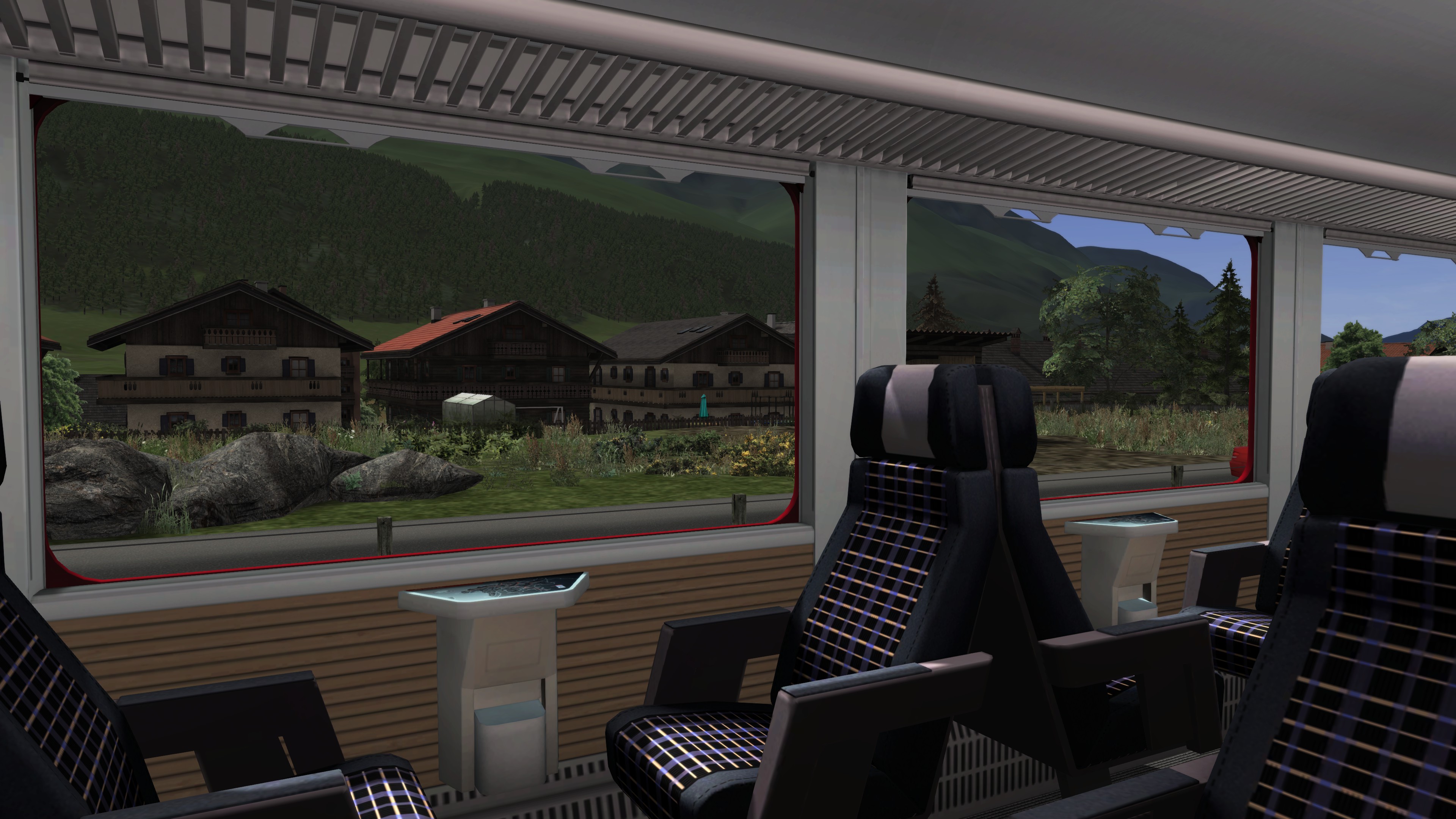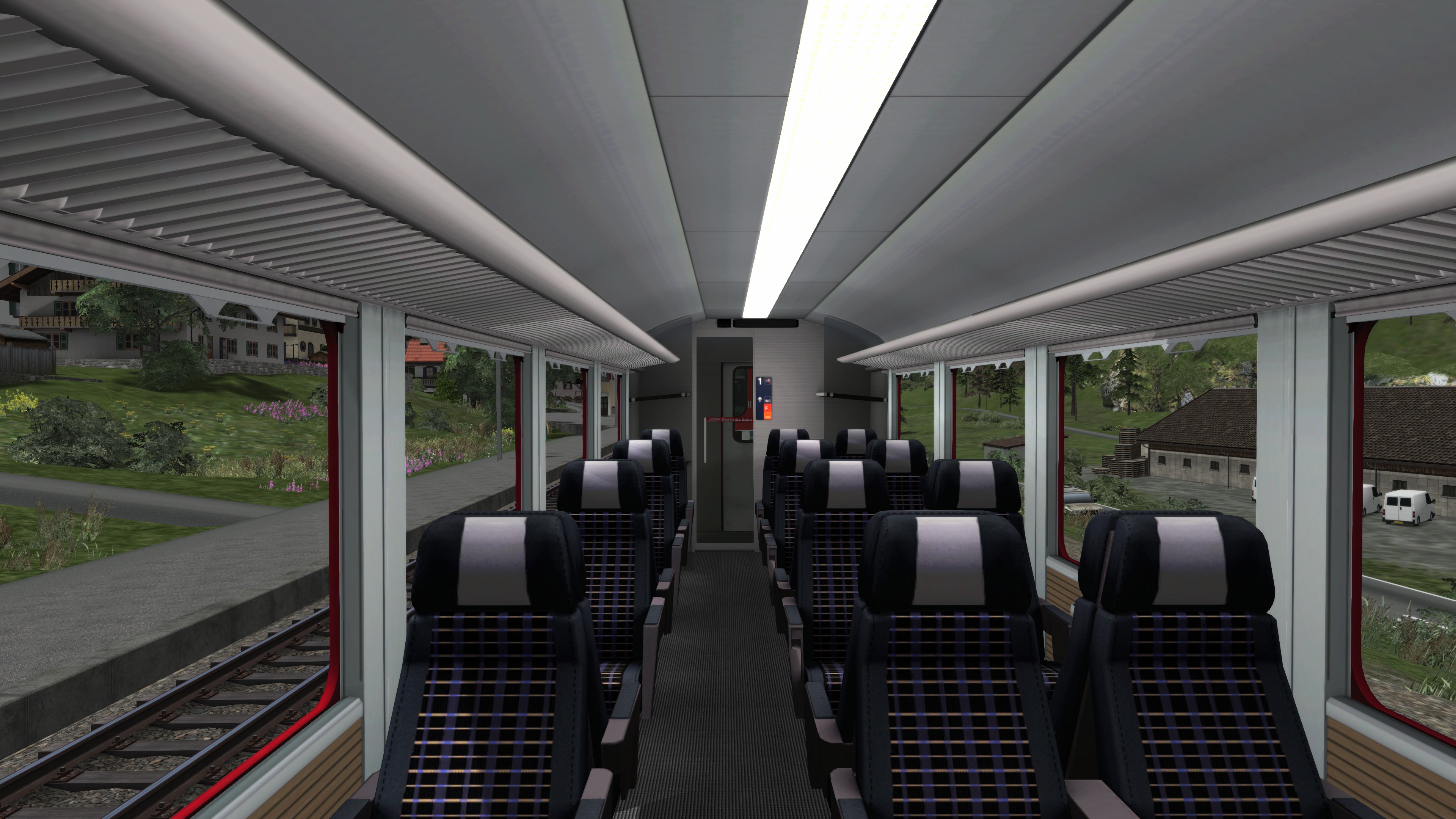 Der Innenraum der Wagons wurde sehr gut nachempfunden und detailliert gestaltet. Mithilfe der Passagieransicht kann man aus verschiedenen Perspektiven die Reise als Passagier wahrnehmen und somit die Landschaft und Architektur dieser Strecke entdecken.
