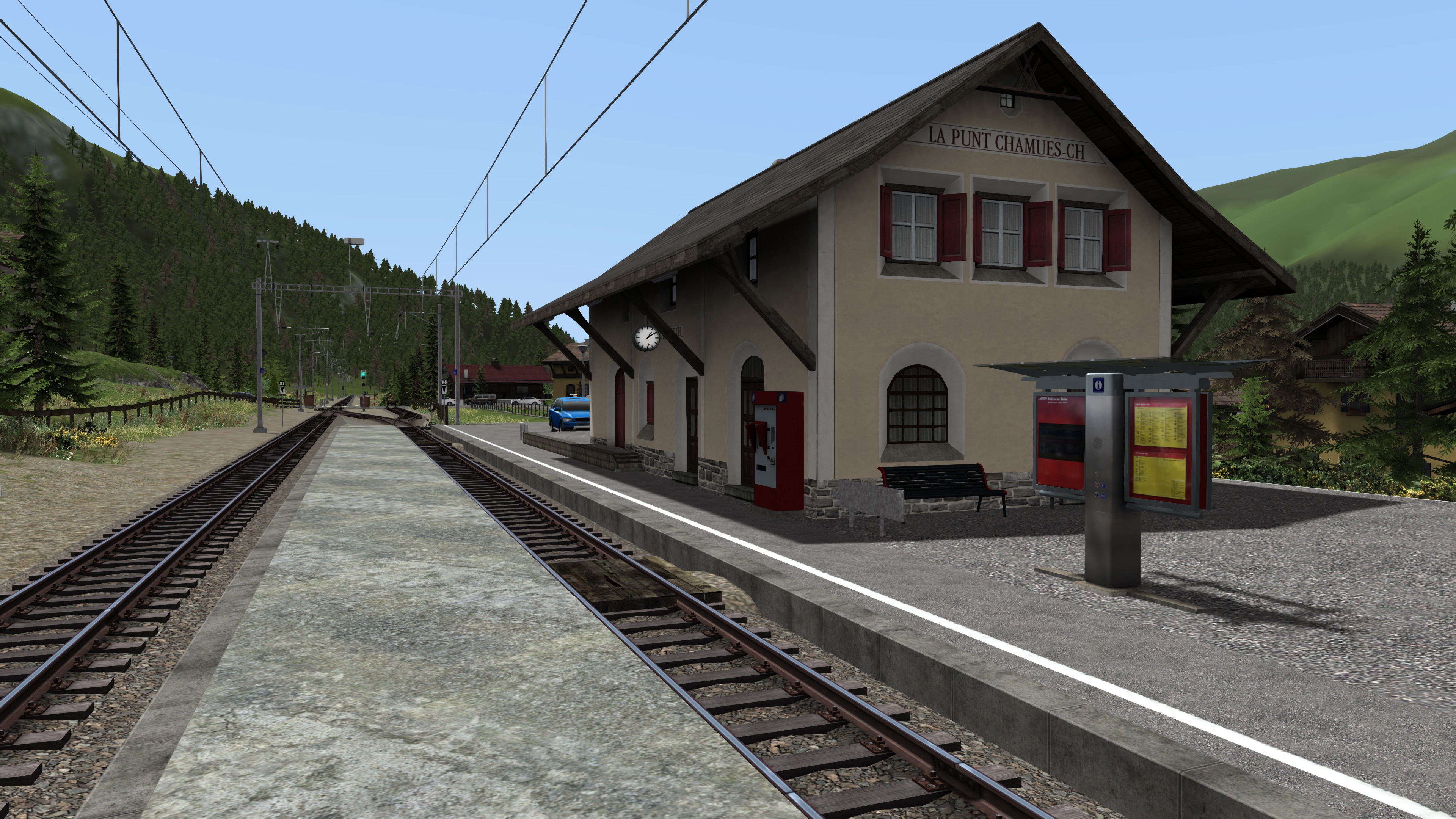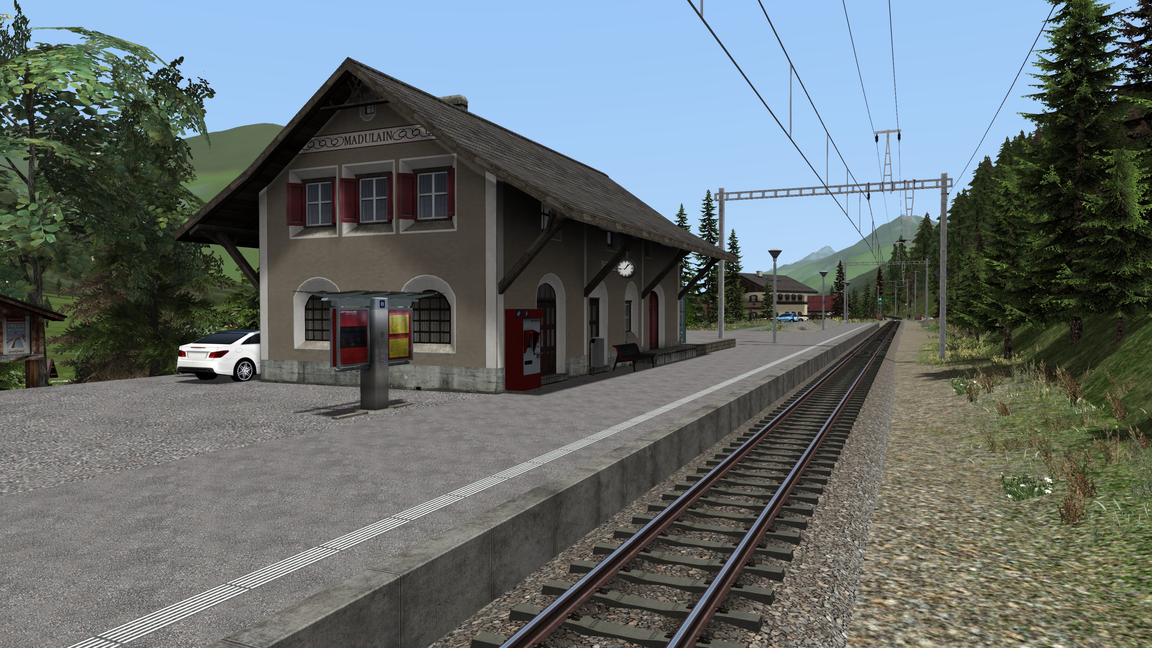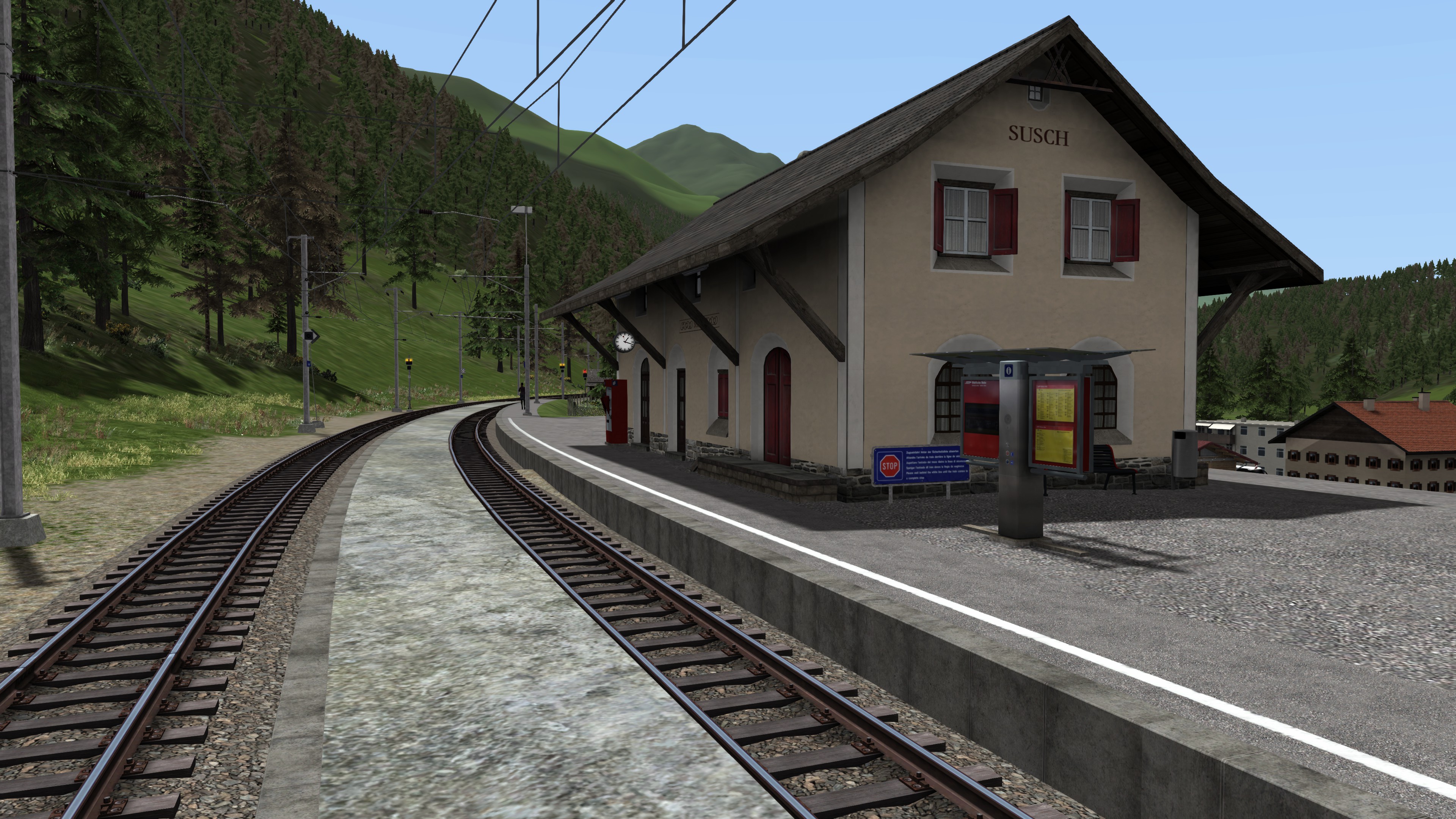 Bei der Landschaftsgestaltung allerdings, wäre eine Abwechslung an Objekten sehr wünschenswert gewesen. So wurden hier beispielsweise viele Objekte von Kuju verwendet. Auch die Türöffnung an manchen Bahnhöfen ist noch nicht so, wie sie eigentlich sein sollte. So öffnen sich beispielsweise in Such, Guarda, ect. die Türen auf der falschen Seite, abgewandt vom Bahnsteig.