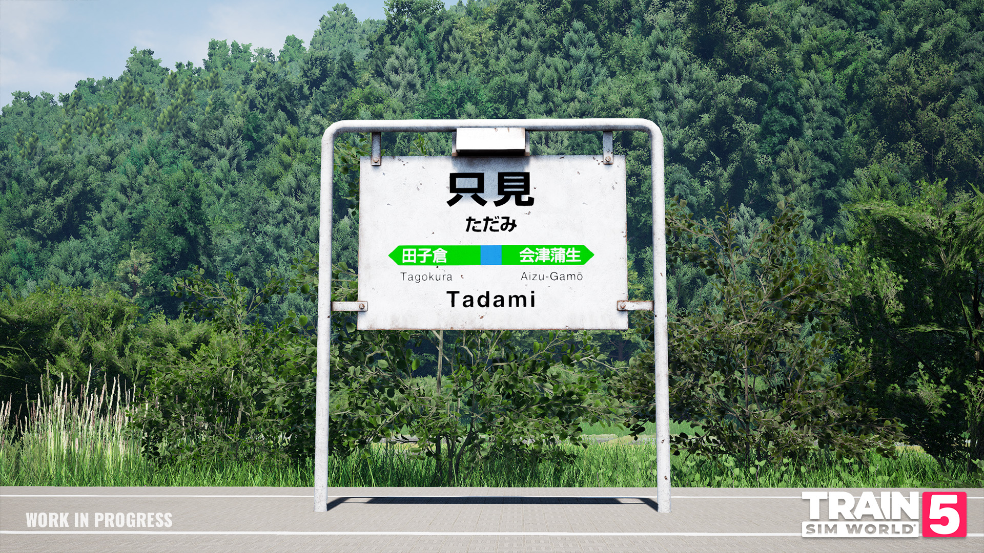 Die Tadami Line Aizu-Wakamatsu – Tadami führt durch atemberaubende Landschaften, enge Täler und malerische ländliche Gebirgstrecken. Als Lokomotive wurde der Kiha 40 Dieseltriebwagen eingesetzt. Die Strecke erstreckt sich über 88 km, mit 28 Stationen und bietet japanische Signalisierung sowie native japanische Sprache, ein neues Feature für TSW.