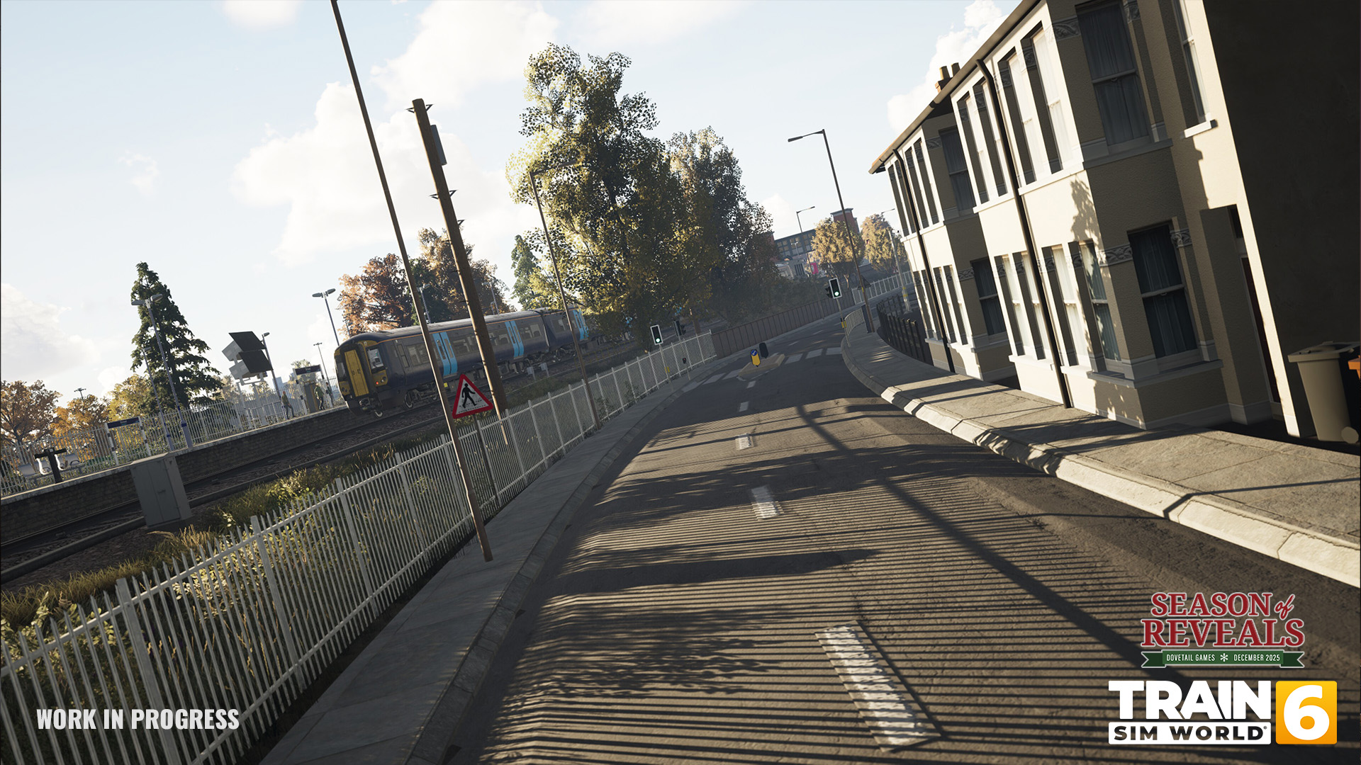 Die gezeigten Screenshots befinden sich noch in einem frühen Entwicklungsstadium. Gleisbau ist abgeschlossen, die Arbeiten an Umgebung und Szenario laufen weiter. Vorläufige Bilder können noch unfertige Beleuchtung oder temporäre Assets enthalten.