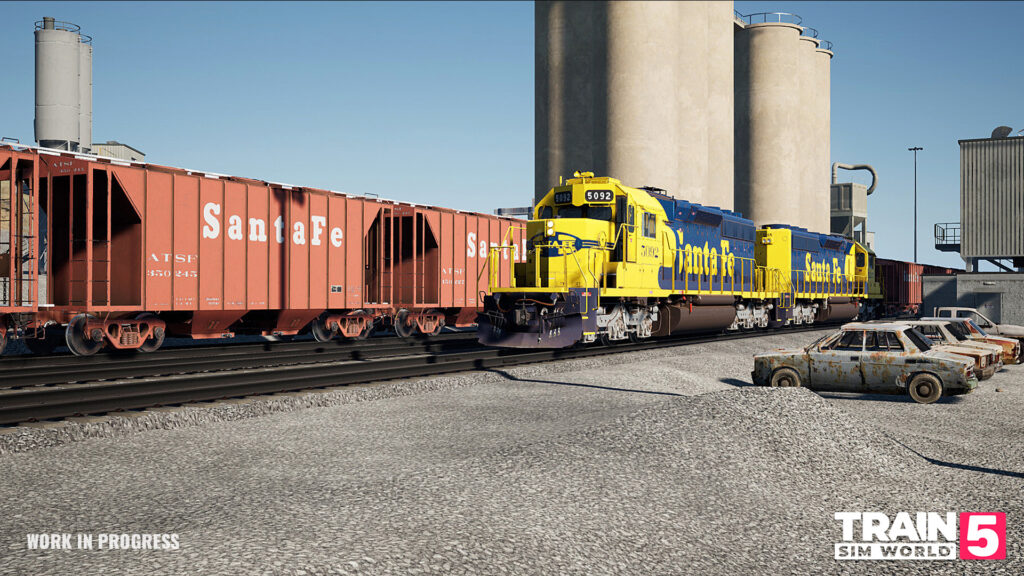 Das Pack umfasst außerdem drei neue Güterwagen: einen Santa Fe Zwei-Bay-Zementwagen, einen Santa Fe Drei-Bay-Rippenschienenwagen und einen ikonischen 86-Fuß-Boxcar für Autoteile. Weitere Fahrzeuge sind ein TSW-Boxcar, ein 3-Bay-Kohlehopper und ein Auto Rack in Santa Fe-Lackierung, sowie weiteres TSW-Rollmaterial aus der gleichen Ära.
