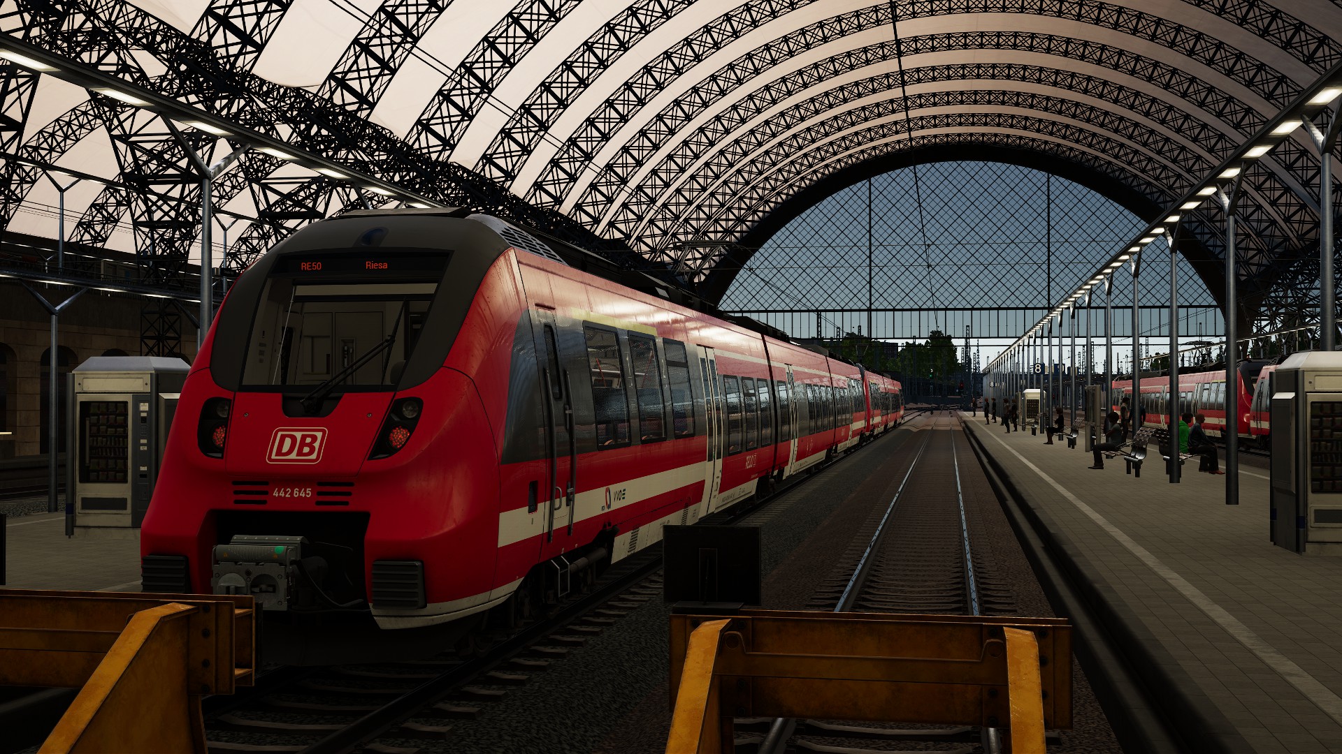 DTG nimmt im TSW2 eine stetige Lernkurve. Das zeigt diese Strecke eindrucksvoll. Völlig gegensätzlich beispielsweise zur „Hauptstrecke Rhein-Ruhr“ Duisburg – Essen gab man sich bei der Ausgestaltung mehr Mühe. Abwechslung in den Baumreihen, authentische Wohnsiedlungen und Gleisanlagen zeigen auf, dass DTG es kann, wenn sie denn wollen. Der Dresdner Hauptbahnhof mit seiner markanten Bahnhofshalle überzeugt mit einem hohen Wiedererkennungswert. Ansonsten überwiegt auf dieser Strecke natürlich sächsische Prärie. Plattenbauten, Wald und – neue – Bahninfrastruktur prägen das Streckenbild. Wer auf der Suche nach krachender Großstadt-Action ist, greift wahrscheinlich lieber zu anderen Strecken.