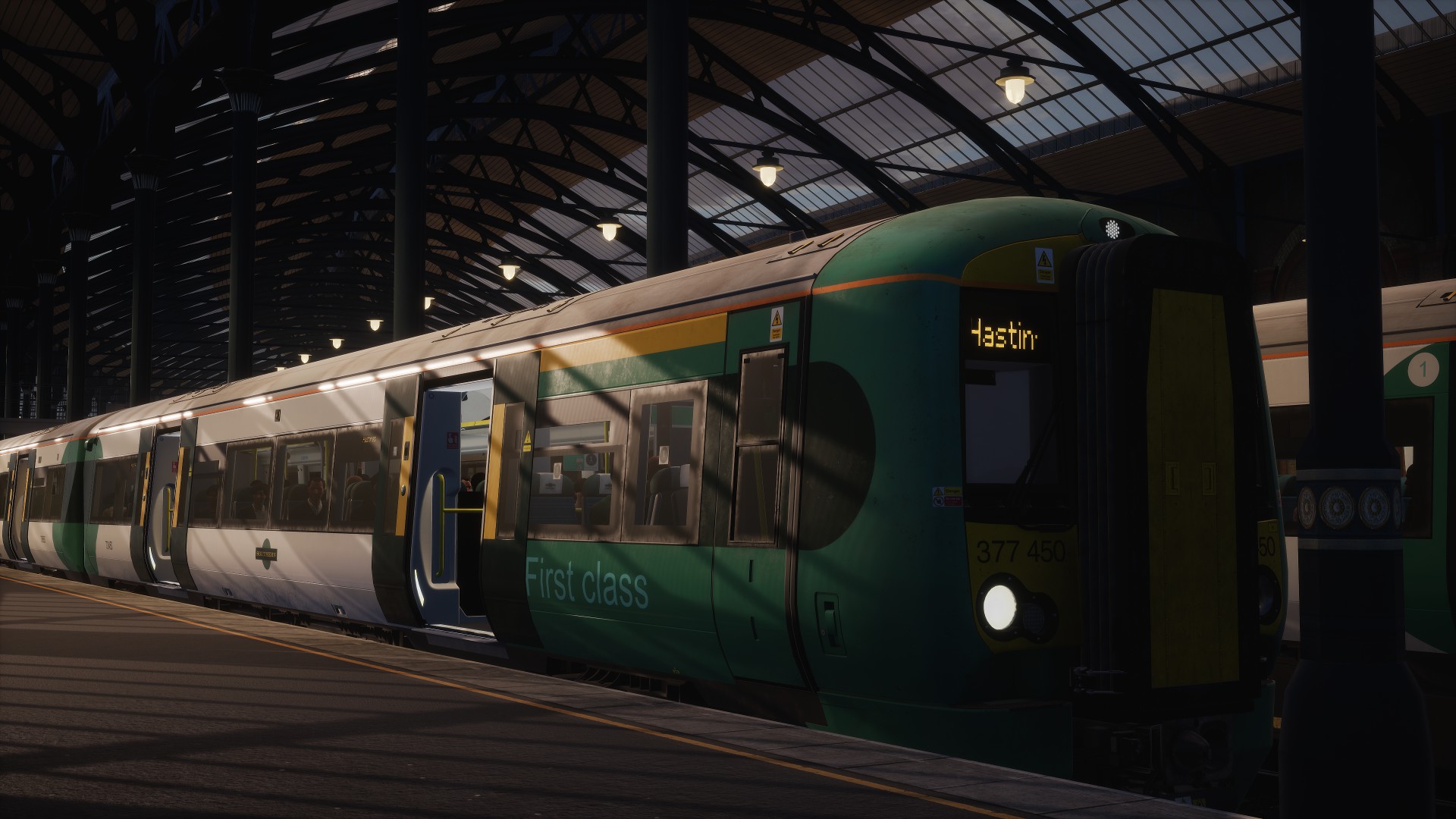Die Class 377 ist ein vierteiliger Elektrotriebwagen, welcher seinen Strom über eine Stromschiene aufnimmt. Im DLC ist dieser Zug sehr gut umgesetzt worden. Das Modell ist schön gestaltet und die Texturen scharf. Es wurde auf viele Details geachtet, so blinken beispielsweise die Türknöpfe beim Öffnen einer Tür. Die Geräuschkulisse ist qualitätiv hochwertig und sehr realistisch. Der Triebwagen verhält sich im Thema Fahrphysik auch sehr realitätsnah. Der Triebwagen ist einer der am besten umgesetzteste im ganzen Spiel.