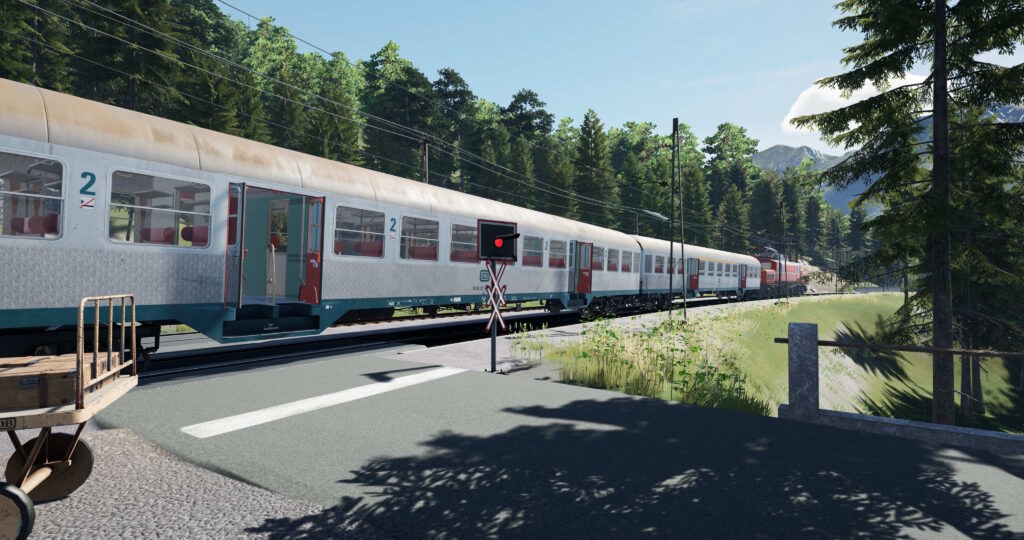 Mein Highlight ist das ÖBB-Krokodil. Als jemand, der eine Vorliebe für die modernen Triebwagen hat, bedeutet das Steuern des Krokodils eine Umstellung. Die Fahrstufen können sehr kleinmaschig hoch- und heruntergeschalten werden. Auf der Mittenwaldbahn, die gerne die Steigungslevel etwas wechselt, ermöglicht das eine genaue „Dosierung“. Alles in allem ist die Lok schön umgesetzt, die Fahrphysik ist stimmig umgesetzt. Auch der Motorraum ist begehbar, dieses Feature fehlt bei der 111er.