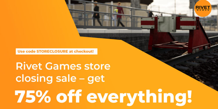 Vor der endgültigen Schließung des Online-Shops bietet Rivet Games einen einmaligen Rabatt von 75 % auf das gesamte Sortiment, einschließlich Train Simulator- und Train Sim World-Inhalten. Das Angebot gilt bis zum 24. Oktober 2024 oder solange der Vorrat reicht. Um den Rabatt zu erhalten, muss im Warenkorb der Code „STORECLOSURE“ eingegeben werden.