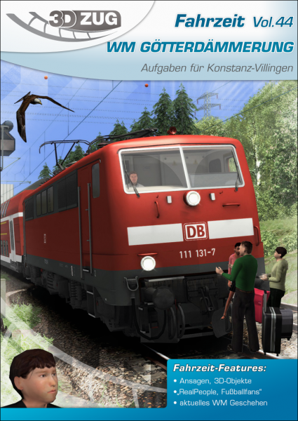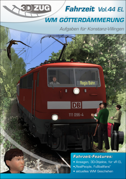 Für die Bahn bedeutet das mal wieder Sonderschichten: Zusätzliche Züge werden in den engen Fahrplan eingereiht, was nicht immer ganz reibungslos verläuft. Doch wo ein Wille ist, ist bekanntlich auch ein Weg! Sechs spannende Aufgaben im Nah- und Güterverkehr müssen – nicht nur durch Fußballfans – bewältigt werden. Ein wahres Sommermärchen wäre es geworden – doch es kam anders. Die Fußballgötter wurden auf den Boden der Tatsachen zurückgeholt – die WM Götterdämmerung bricht herein.Das Add-On ist auch als EL-Version für vR Lokomotiven erhältlich.