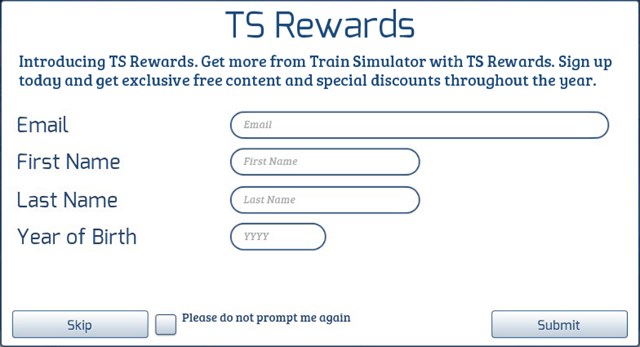 Get more from Train Simulator with TS Rewards. Register your copy of TS2016 and get exclusive free content.