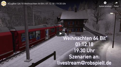 Quelle und weitere Informationen findet ihr auf YouTube. Link: #ZugBier Q4/18 Weihnachten 64 Bit | 01.12.18 | 19:30 Uhr