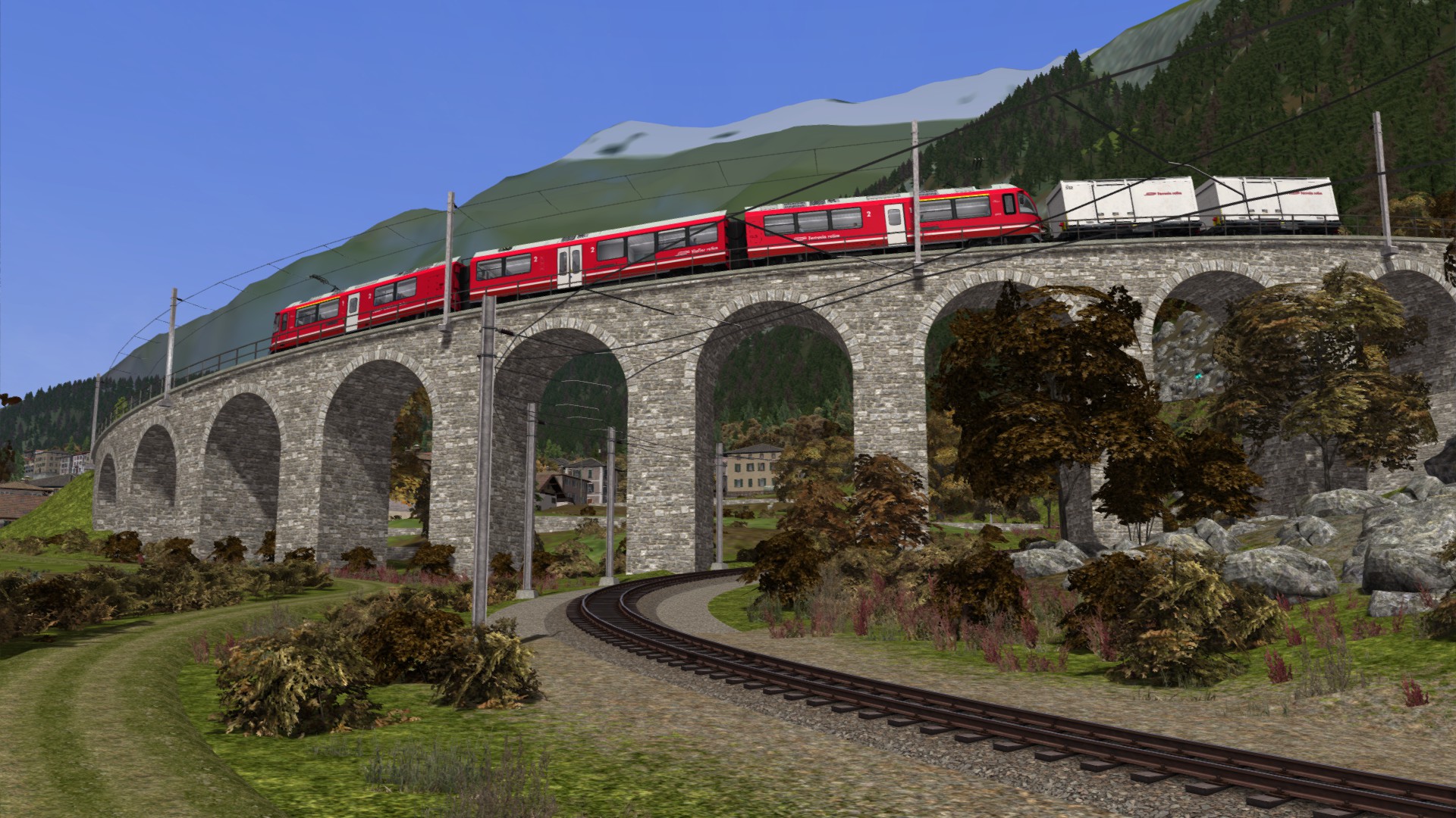 Der Gleisbau ist weitestgehend sehr gut gemacht, vor allem, wenn man bedenkt, welche Grenzen es im Train Simulator gibt, wenn es um scharfe Kurven und extreme Steigungen geht. Einziger Kritikpunkt hier ist, dass um Tirano herum eine geringe Anzahl an Kurven ohne spürbare Übergangsbögen verlegt worden sind.
