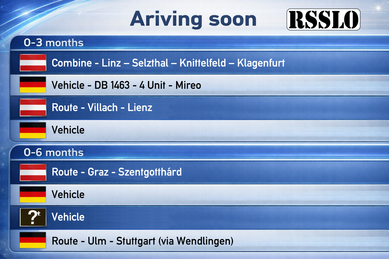 [RSSLO] Übersicht über neue Fahrzeuge und Strecken